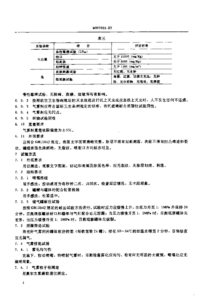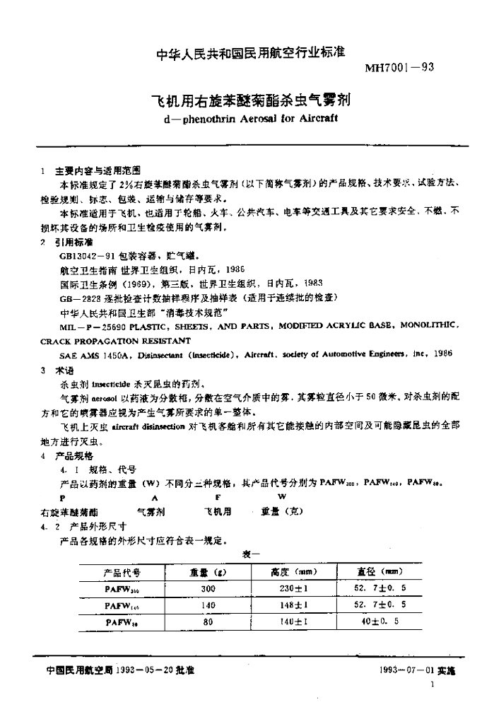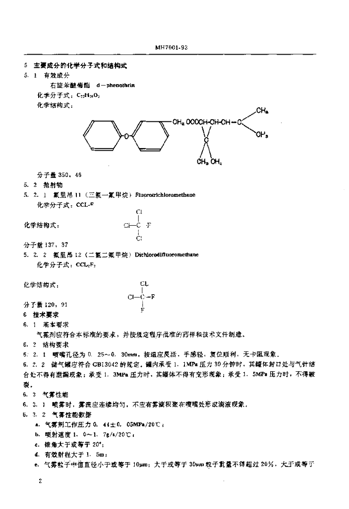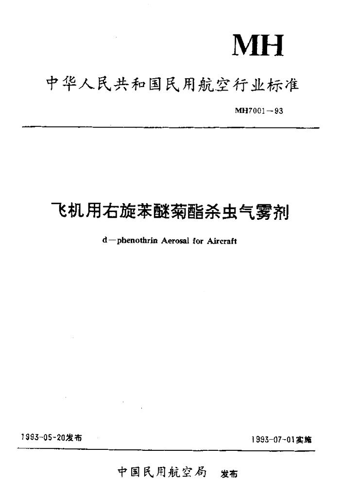 MH 7001-1993 飞机用右旋苯醚菊酯杀虫气雾剂