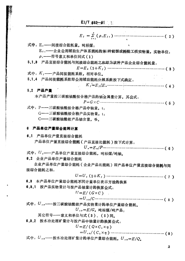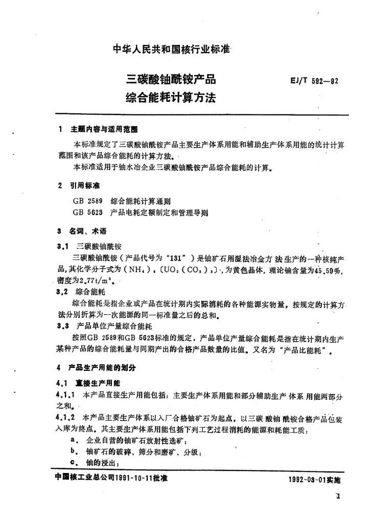 EJ/T 592-1991 三碳酸铀酰铵产品综合能耗计算方法