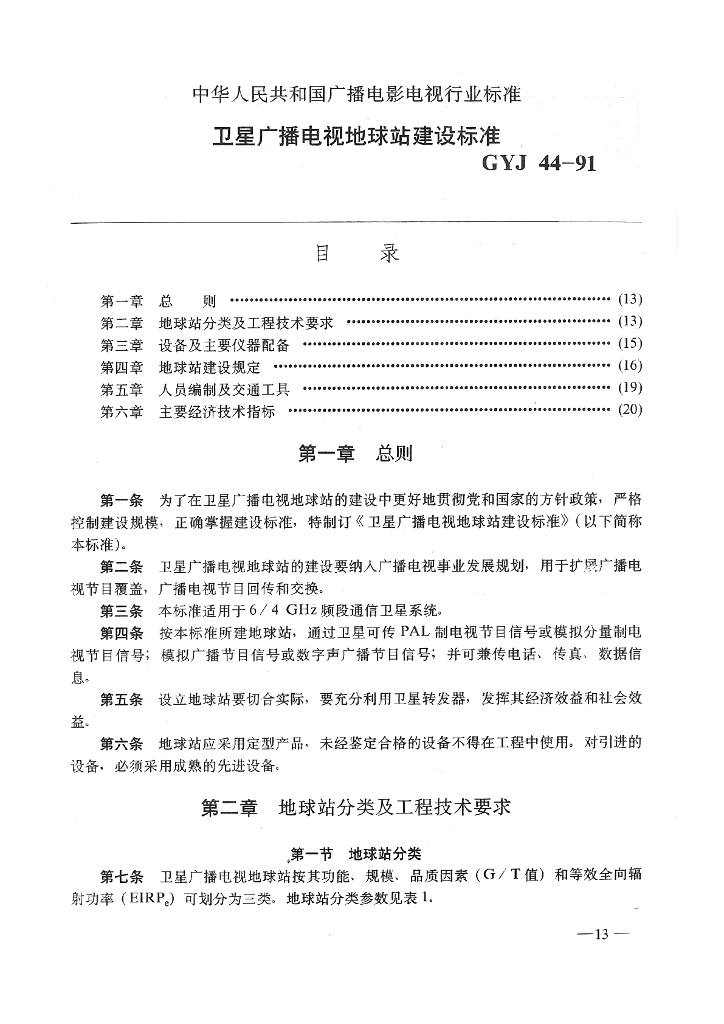 GYJ 44-1991 卫星广播电视地球站建设标准
