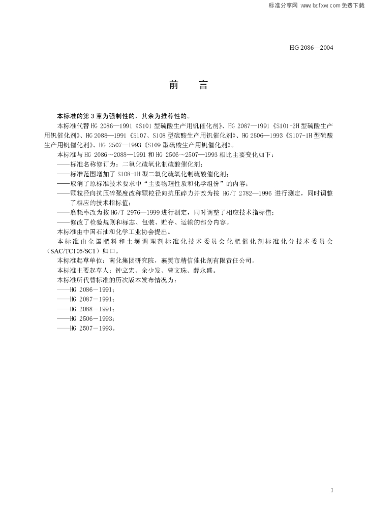 HG 2086-2004 二氧化硫氧化制硫酸催化剂