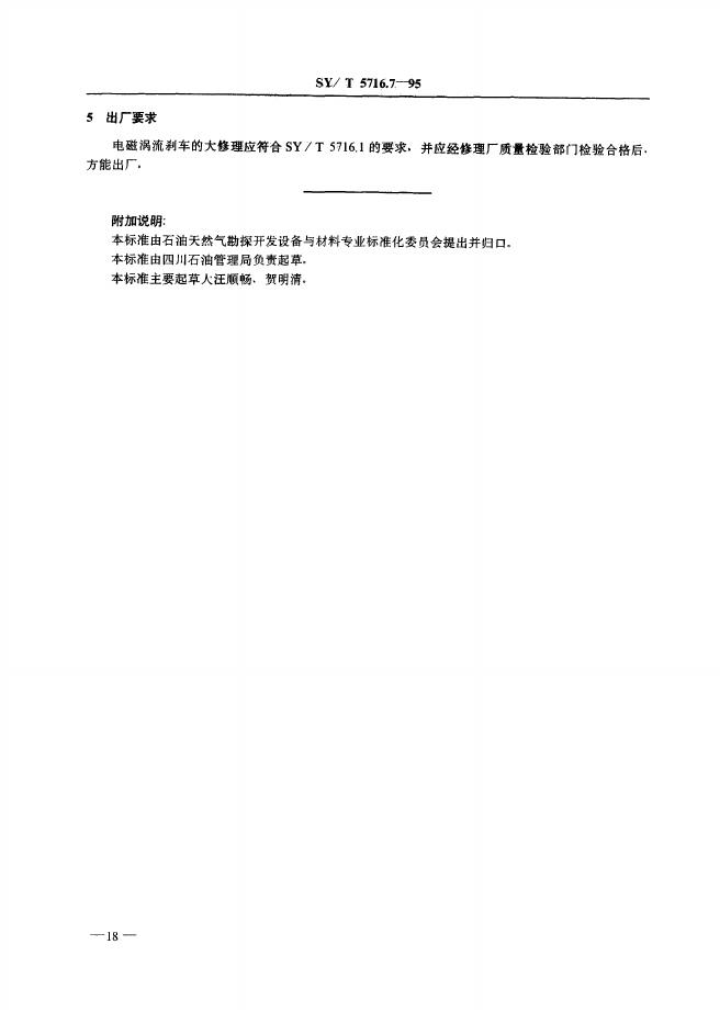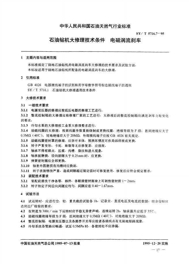 SY/T 5716.7-1995 石油钻机大修理技术条件电 涡流刹车