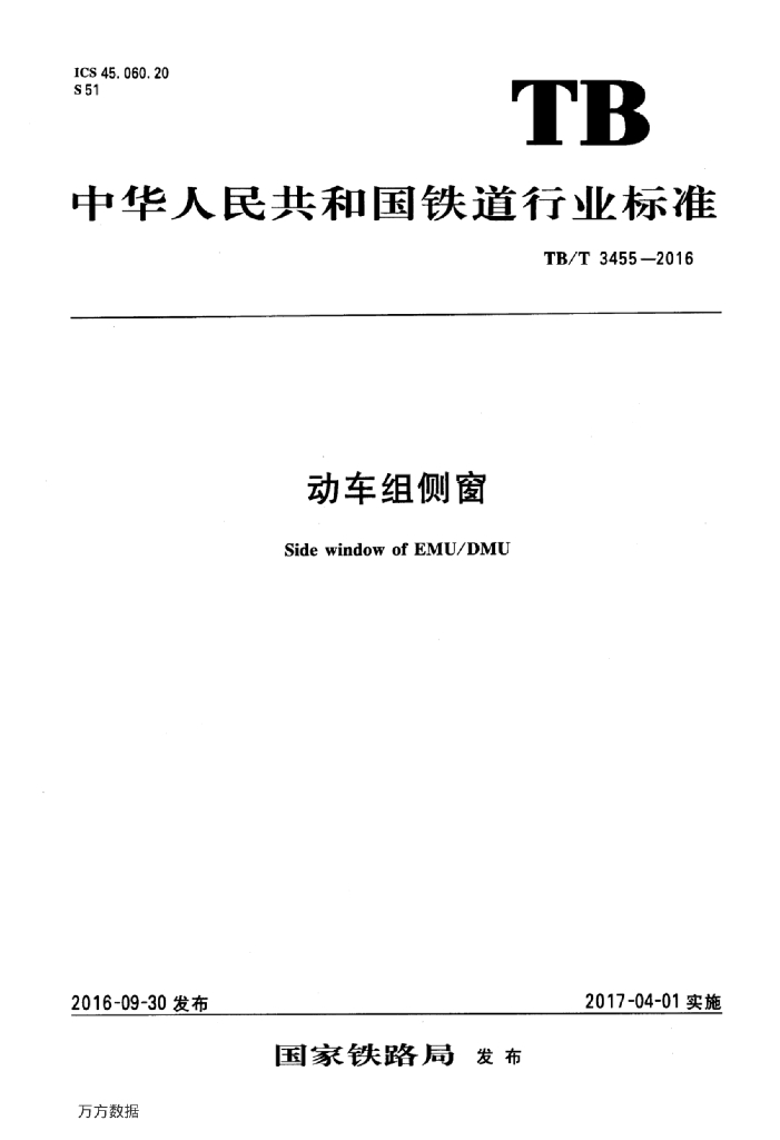 TB/T 3455-2016 动车组侧窗