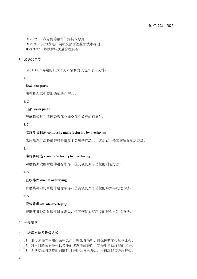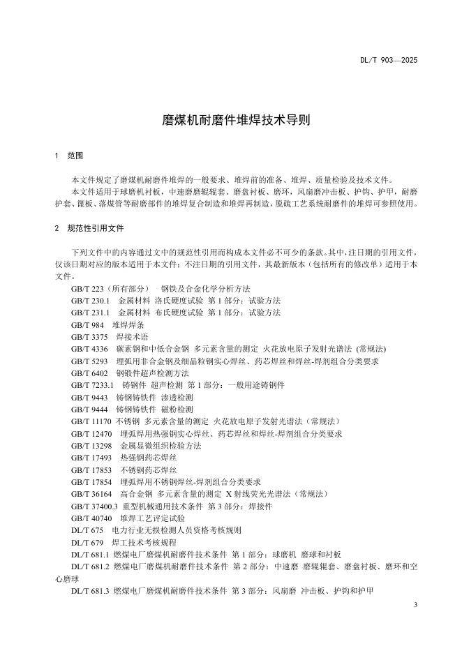 DL/T 903-2025 磨煤机耐磨件堆焊技术导则