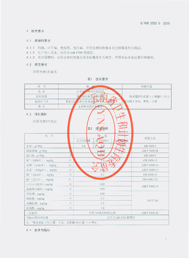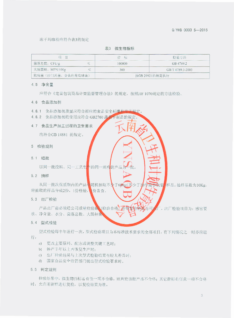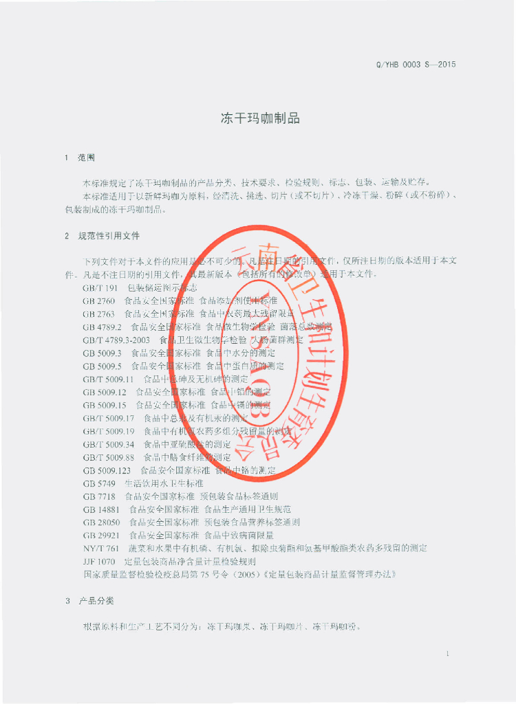 Q/YHB 0003S-2015 云南恒邦科技有限公司 冻干玛咖制品
