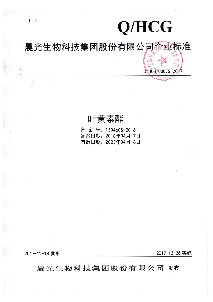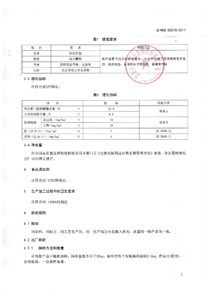 Q/HCG 0007S-2017 叶黄素酯