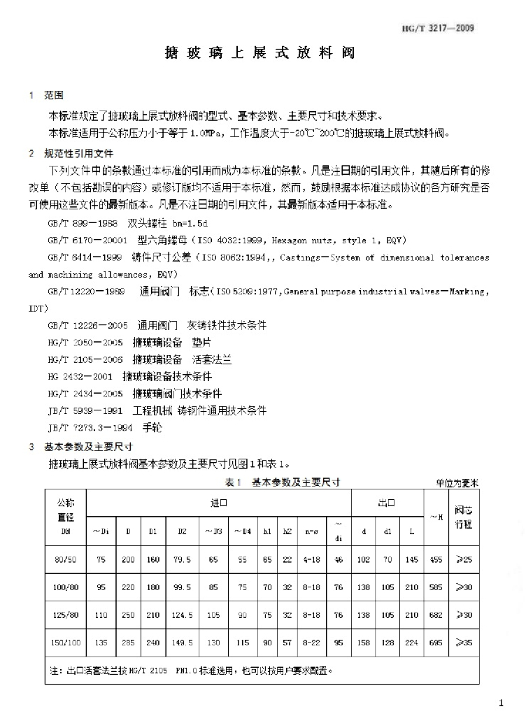 HG/T 3217-2009 搪玻璃上展式放料阀