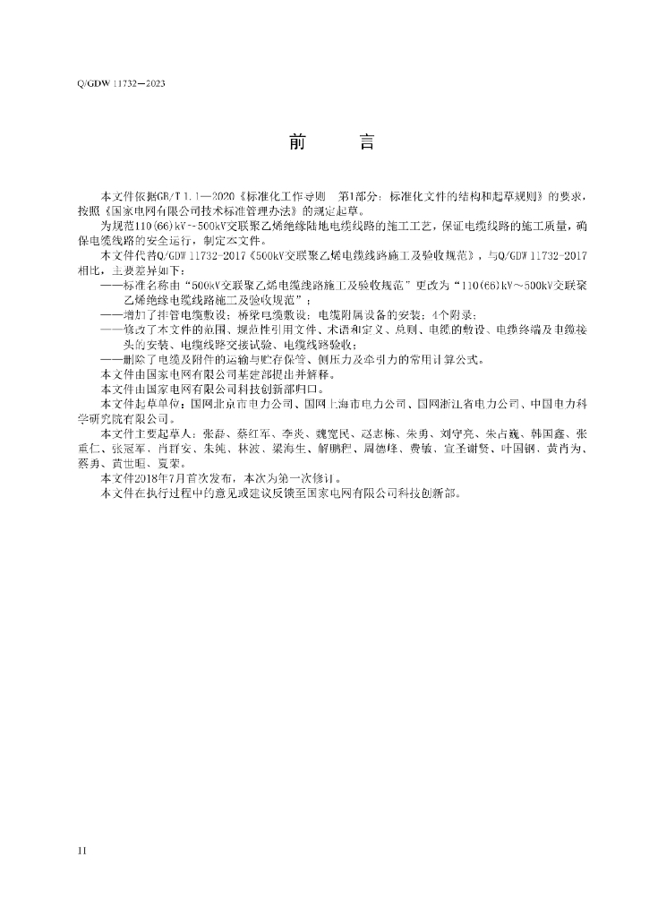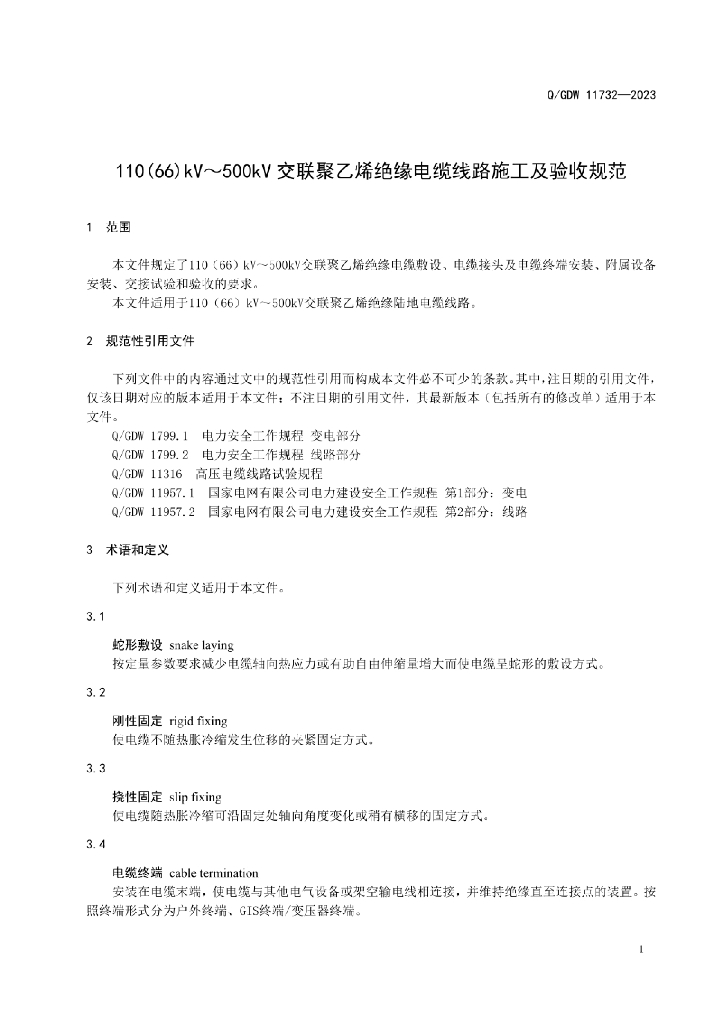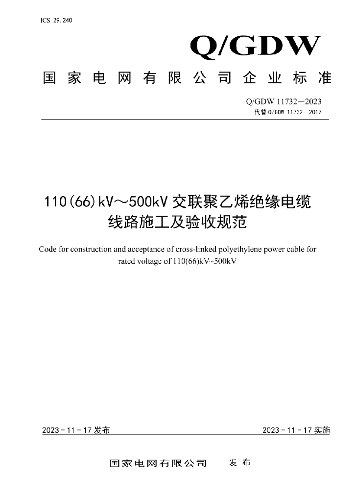 Q/GDW 11732-2023 110(66) kV~500kV交联聚乙烯绝缘电缆线路施工及验收规范