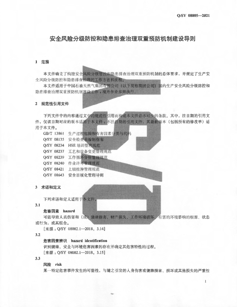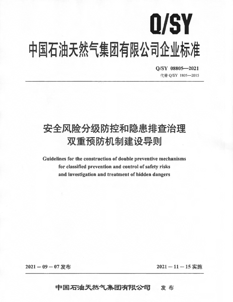 Q/SY 08805-2021 安全风险分级防控和隐患排查治理双重预防机制建设导则