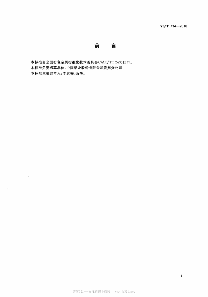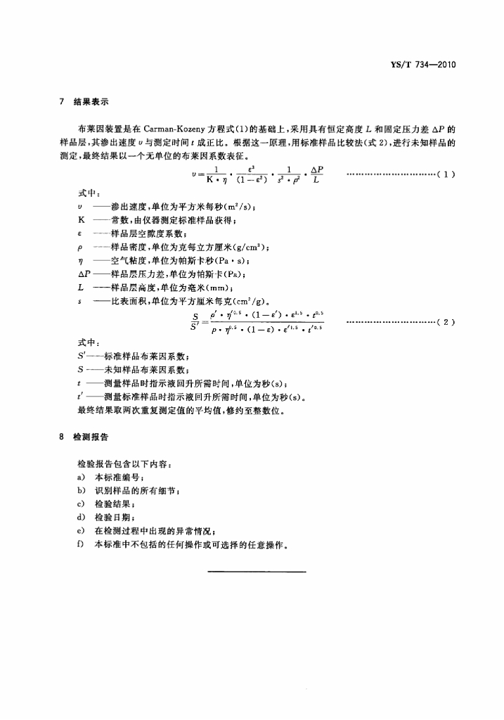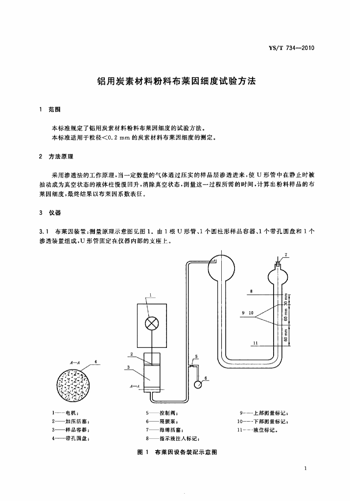 YS/T 734-2010 铝用炭素材料粉料布莱因细度试验方法