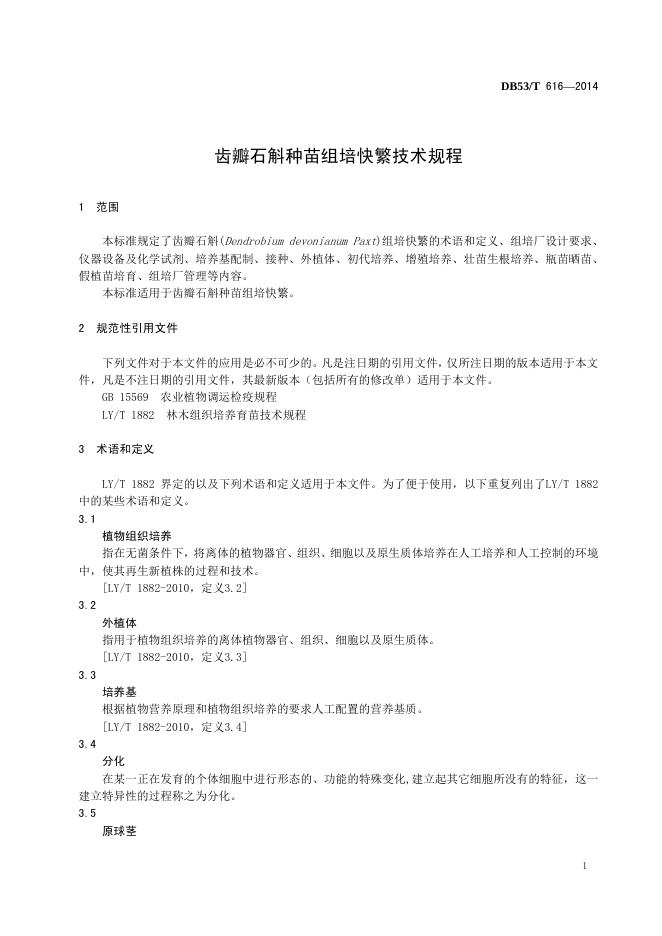 DB53/T 616-2014 齿瓣石斛种苗组培快繁技术规程