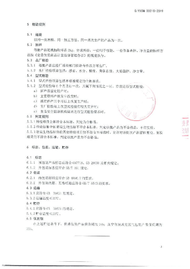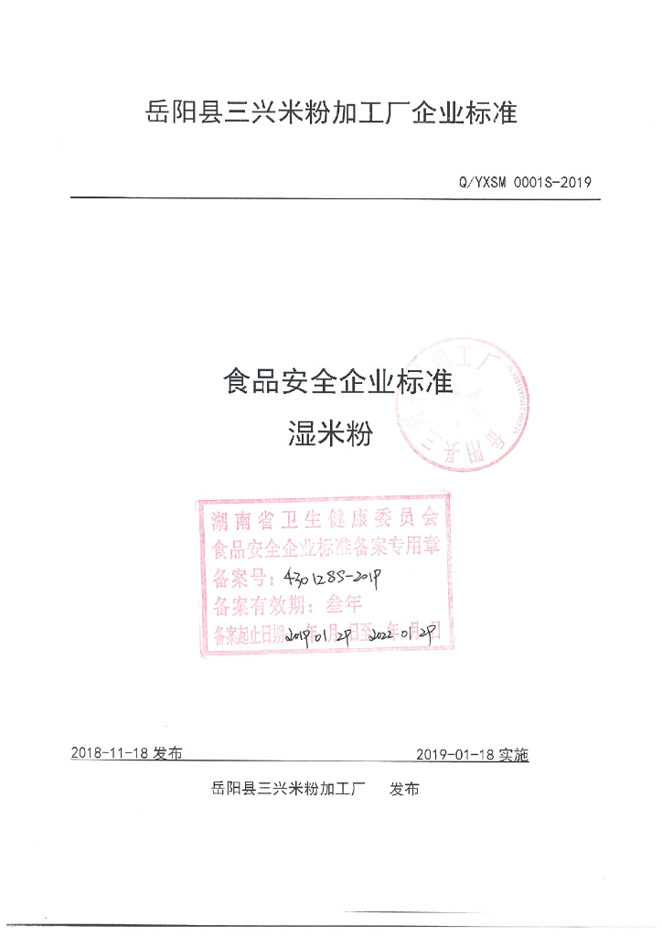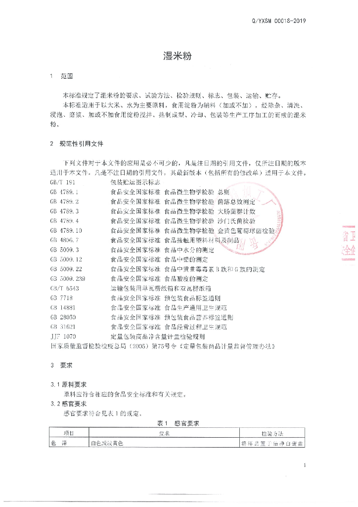 Q/YXSM 0001S-2019 湿米粉