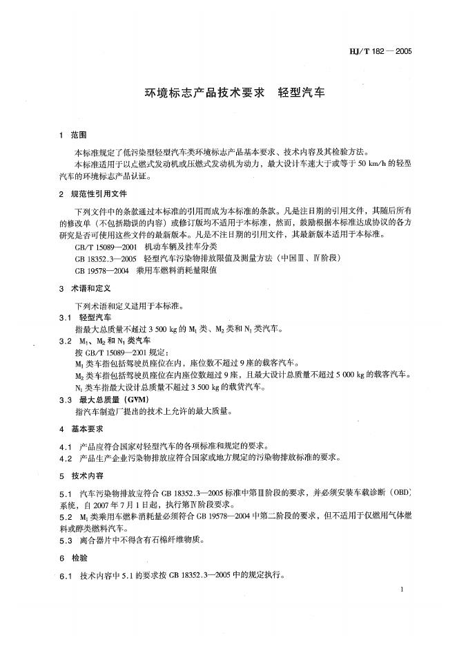 HJ/T 182-2005 环境标志产品技术要求 轻型汽车
