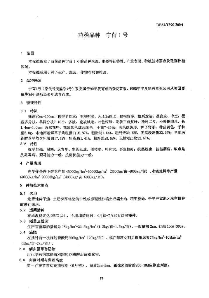 DB64/T 390-2004 苜蓿品种 宁苜1号
