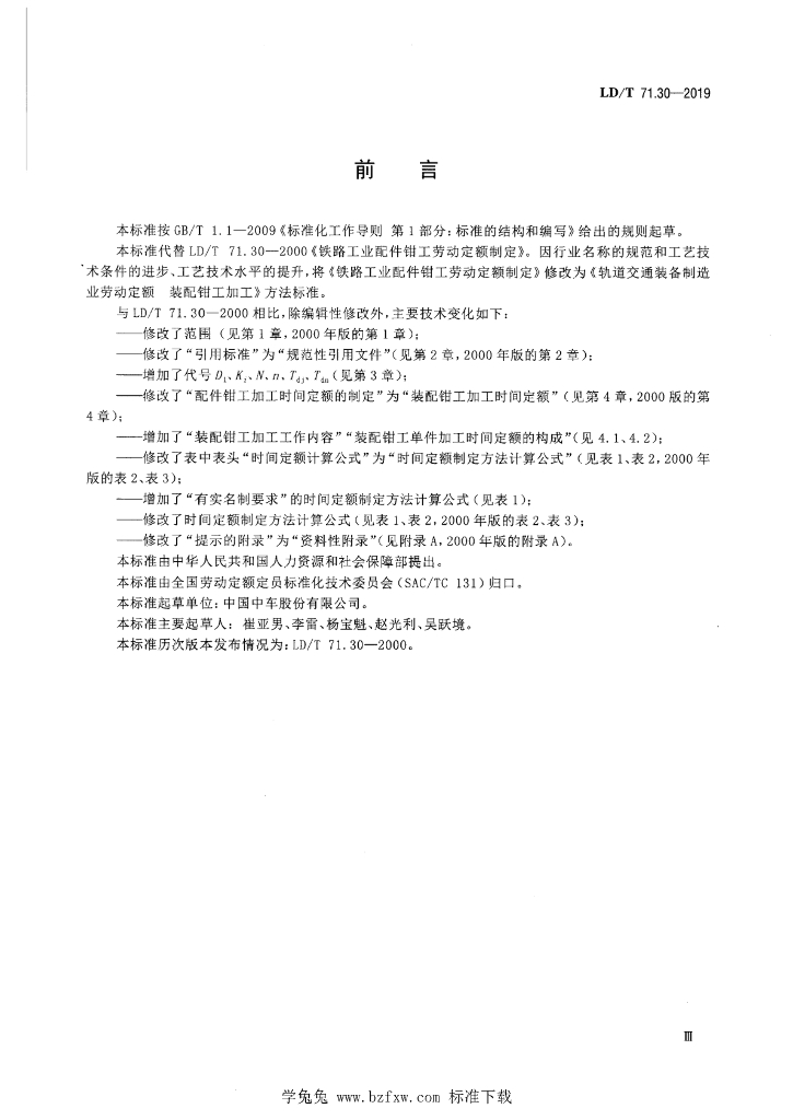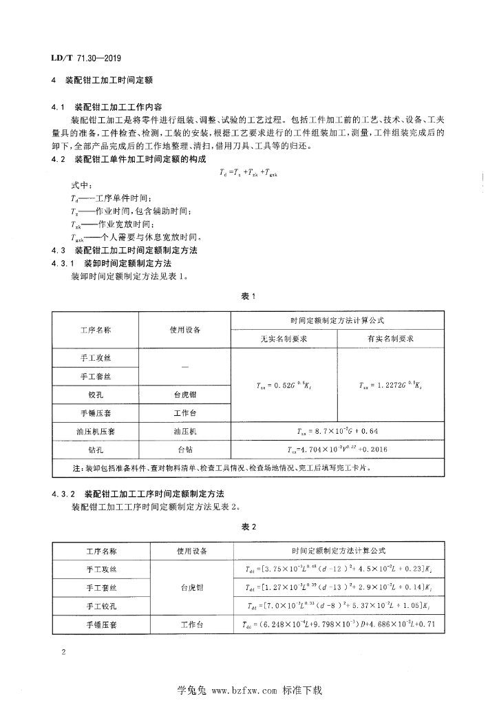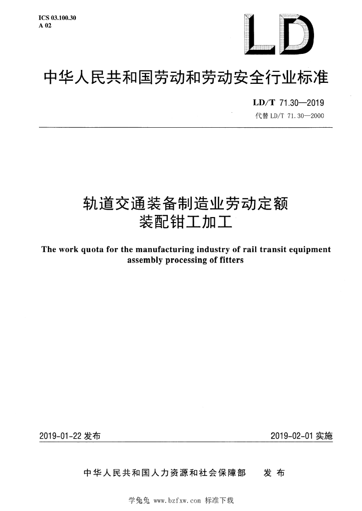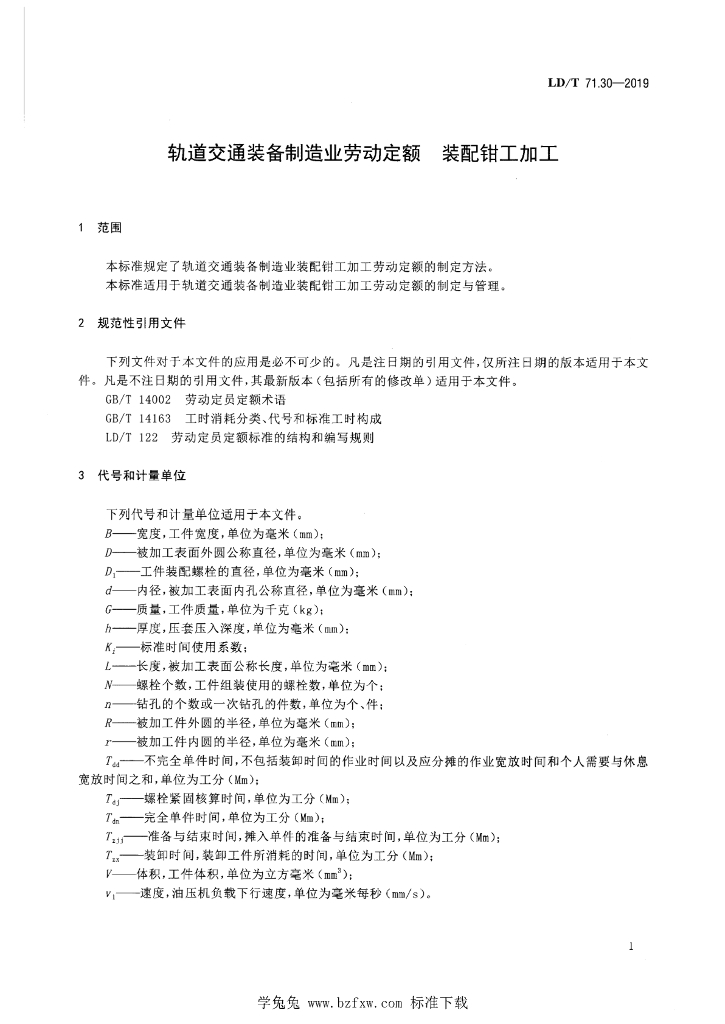 LD/T 71.30-2019 轨道交通装备制造业劳动定额 装配钳工加工