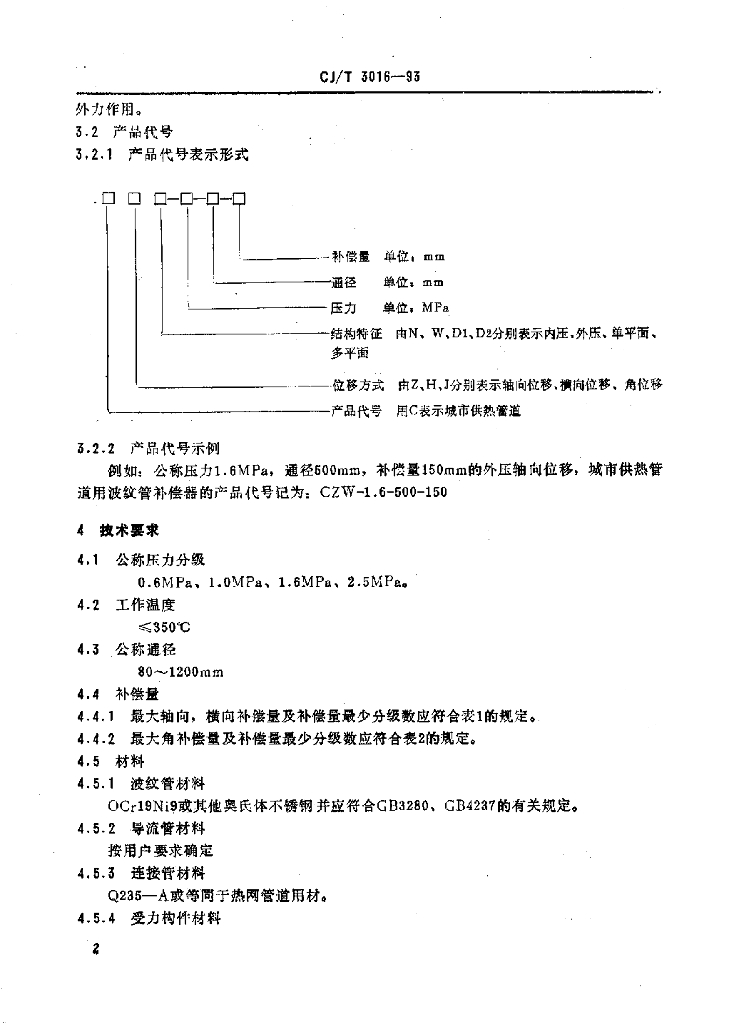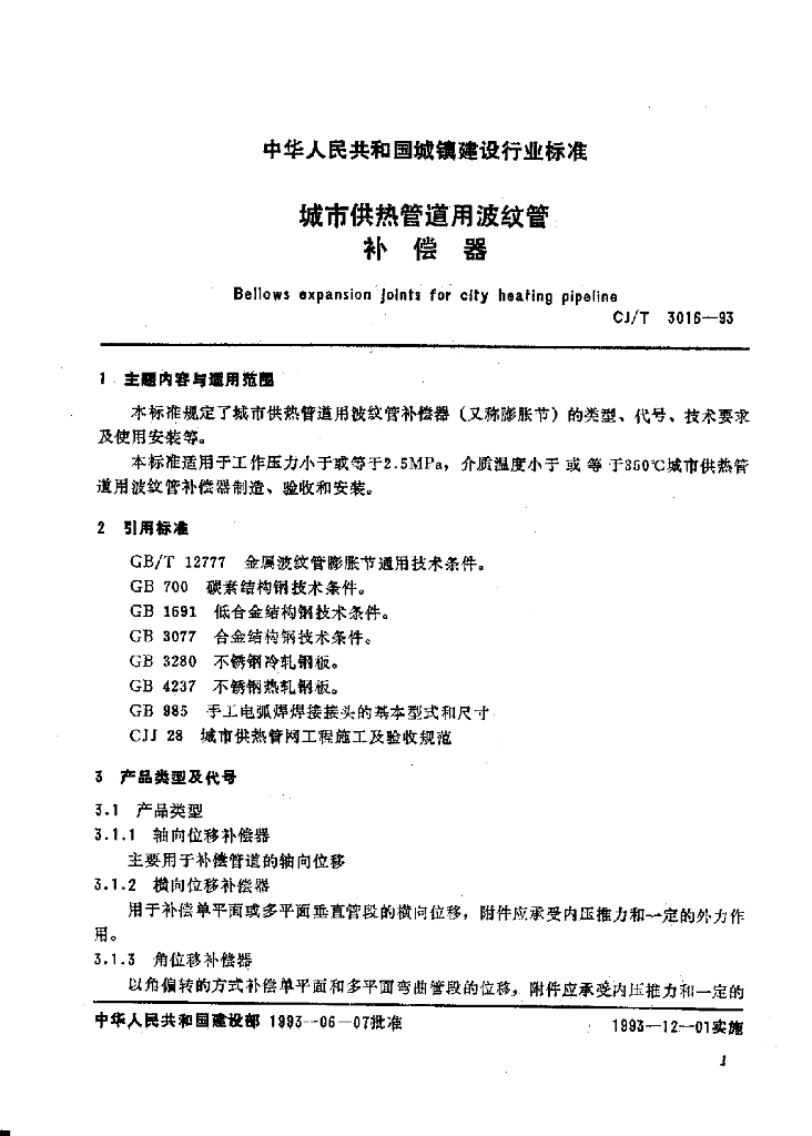 CJ/T 3016-1993 城市供热管道用波纹管 补偿器