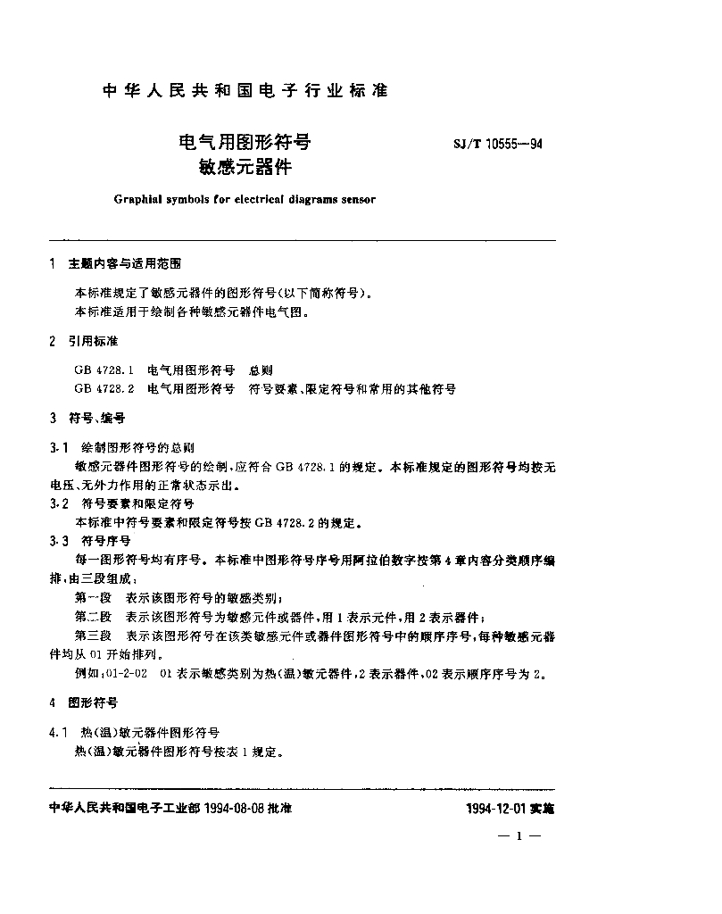 SJ/T 10555-1994 电气用图形符号 敏感元器件