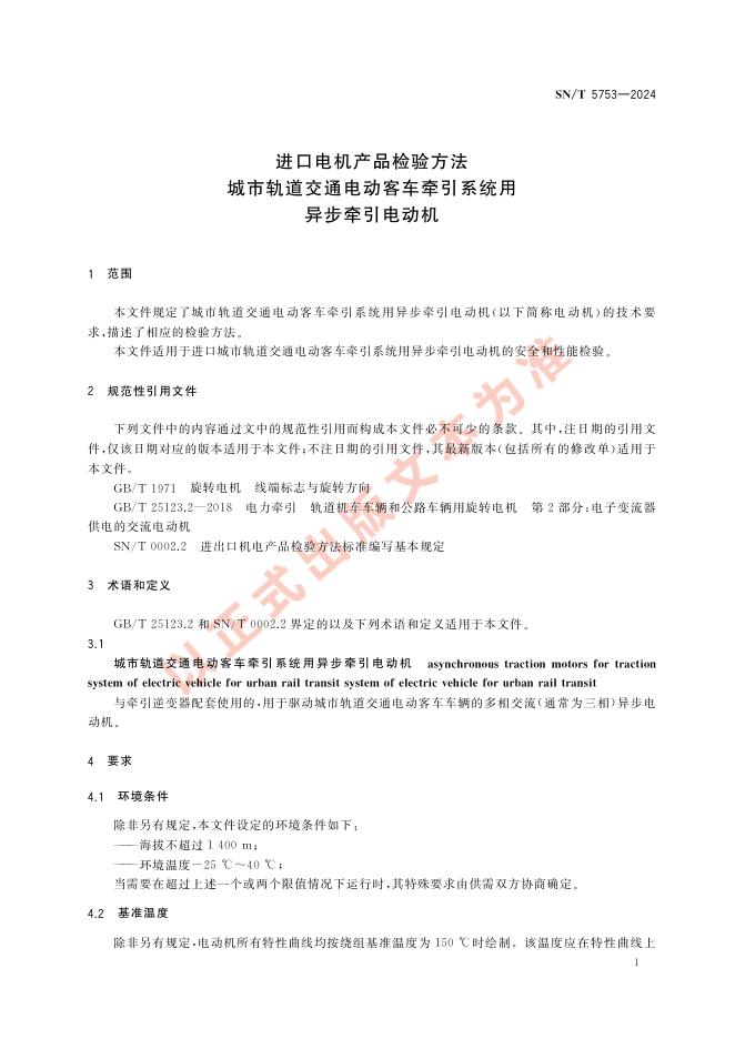 SN/T 5753-2024 进口电机产品检验方法 城市轨道交通电动客车牵引系统用异步牵引电动机