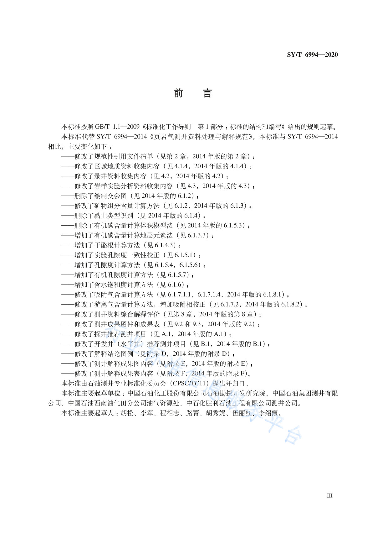 SY/T 6994-2020 页岩气测井资料处理与解释规范