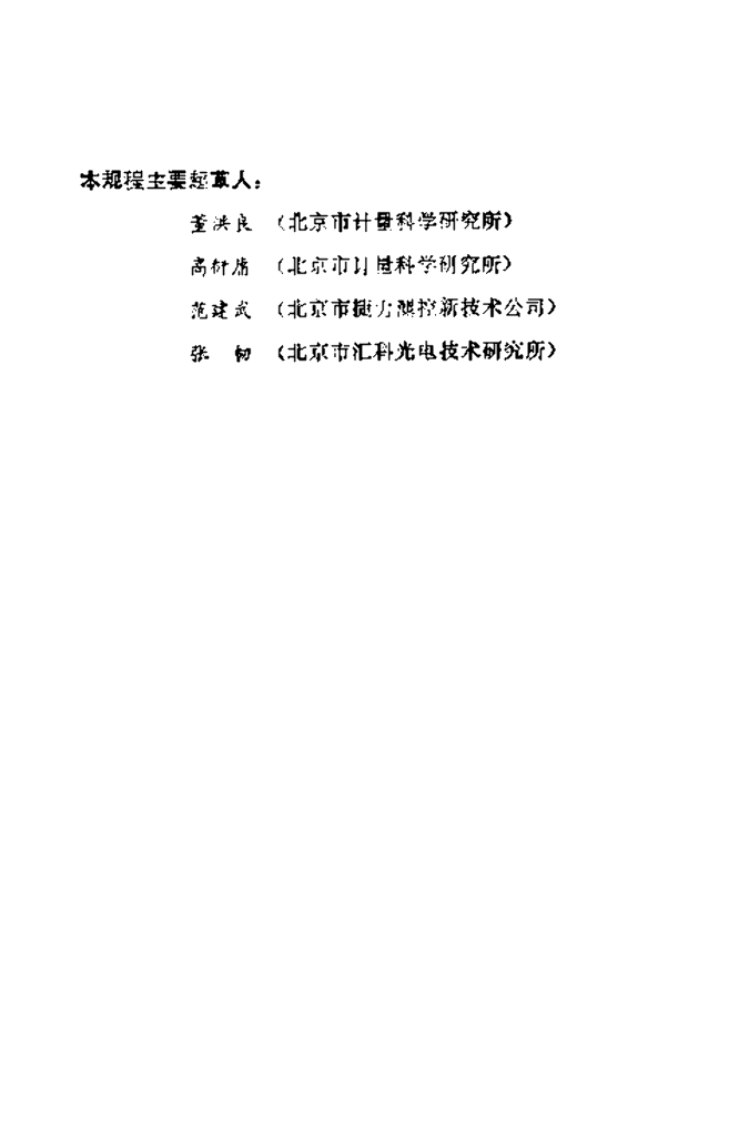 董洪良(北京市计量科学研究所)、高衍庸(北京市计量科学研究所)、范建武(北京市捷力测控新技术公司)、张韧(北京市汇科光电技术研究所)