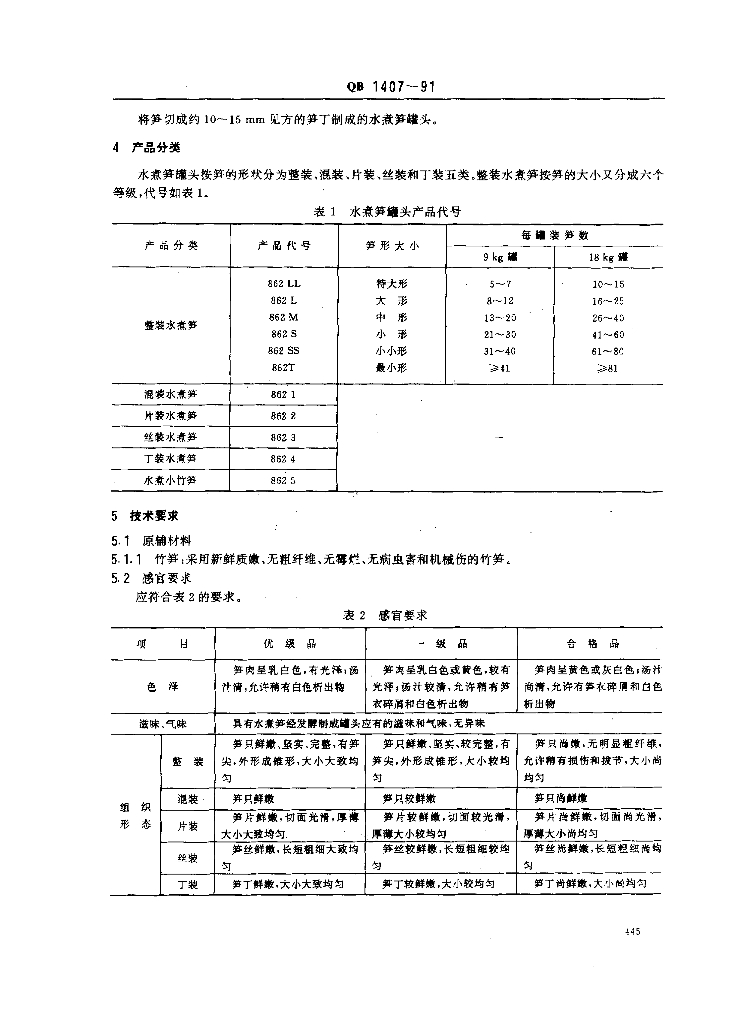 QB/T 1407-1991 水煮笋罐头