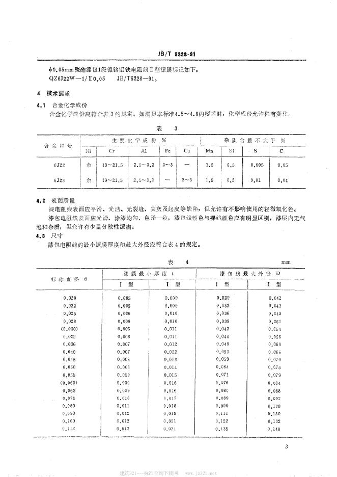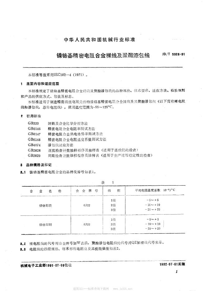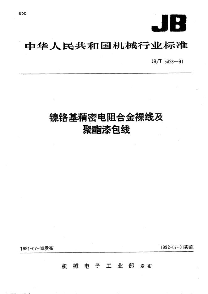 JB/T 5328-1991 镍铬基精密电阻合金裸线及聚酯漆包线