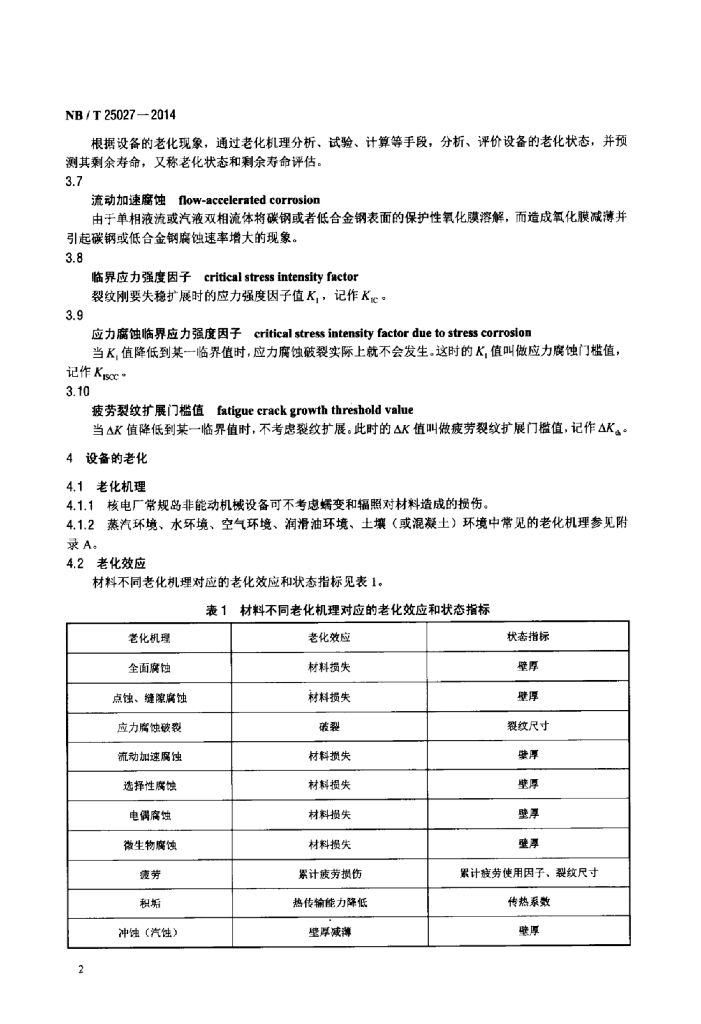 NB/T 25027-2014 核电厂常规岛非能动机械设备老化 状态和寿命评估技术导则