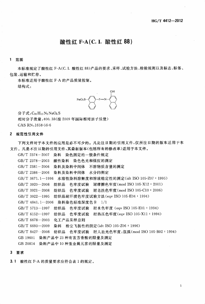 HG/T 4412-2012 酸性红 F-A(C. I. 酸性红 88)