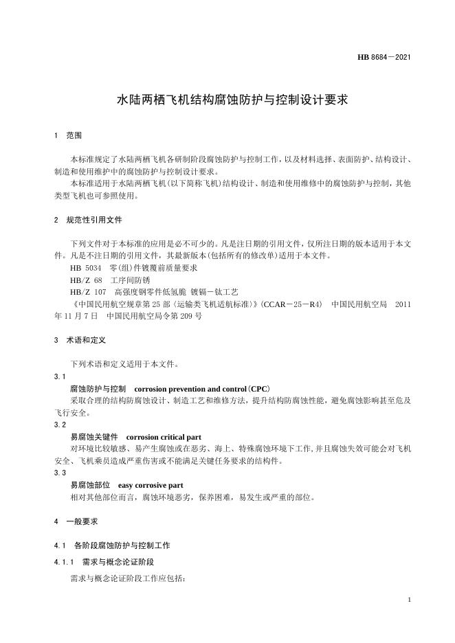 HB 8684-2021 水陆两栖飞机结构腐蚀防护与控制 设计要求
