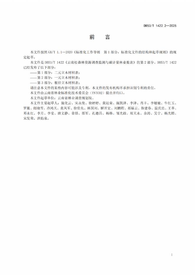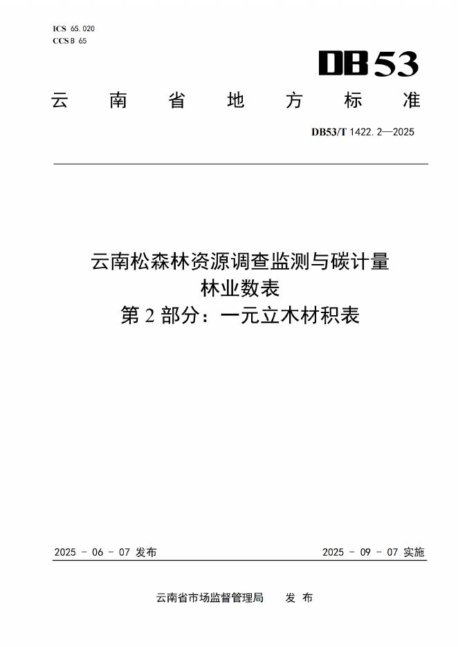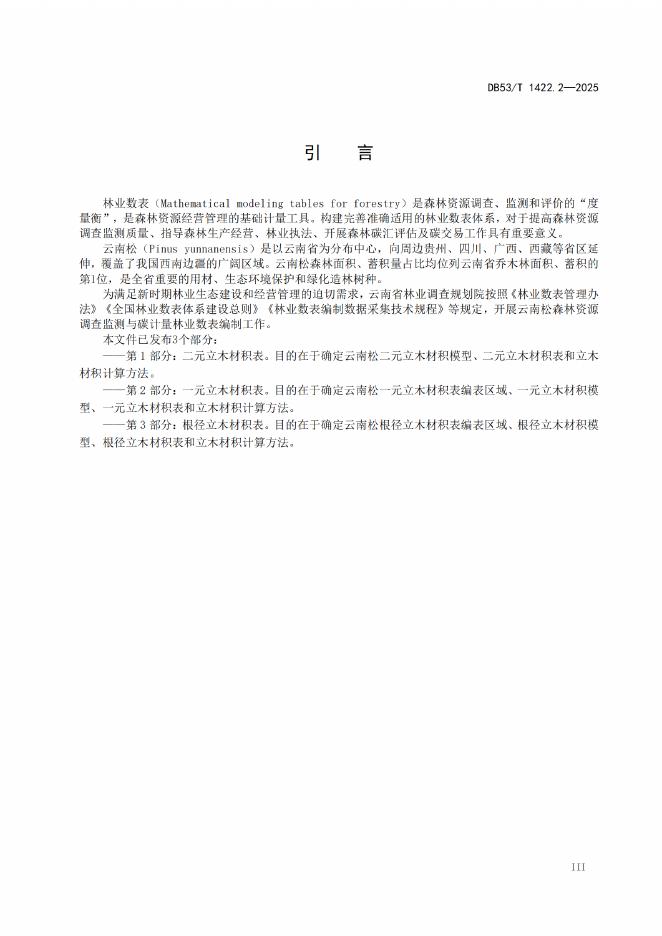 DB53/T 1422.2-2025 云南松森林资源调查监测与碳计量林业数表 第2部分:一元立木材积表