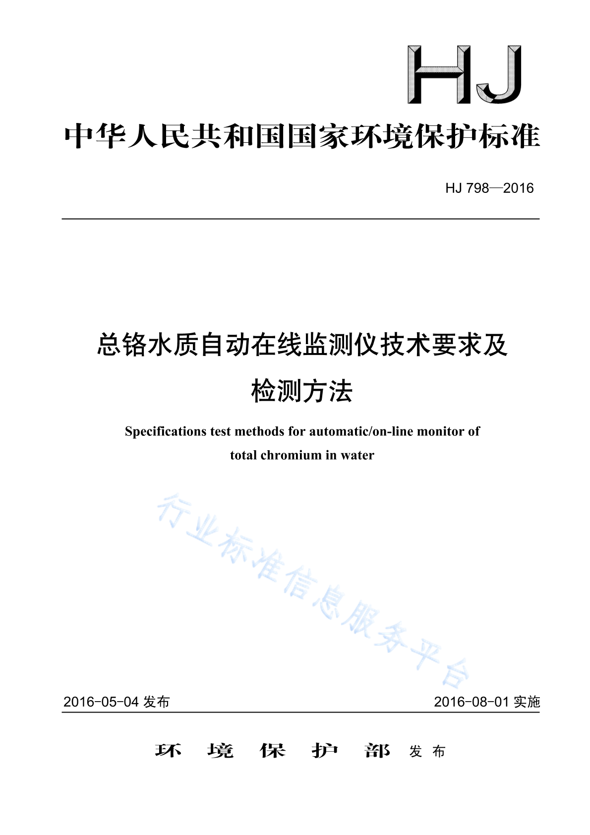 HJ 798-2016 总铬水质自动在线监测仪技术要求及检测方法