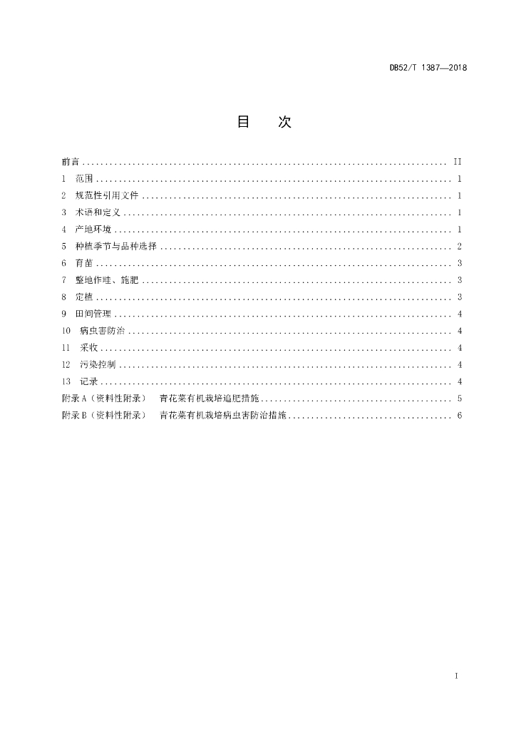 DB52/T 1387-2018 青花菜有机栽培技术规程