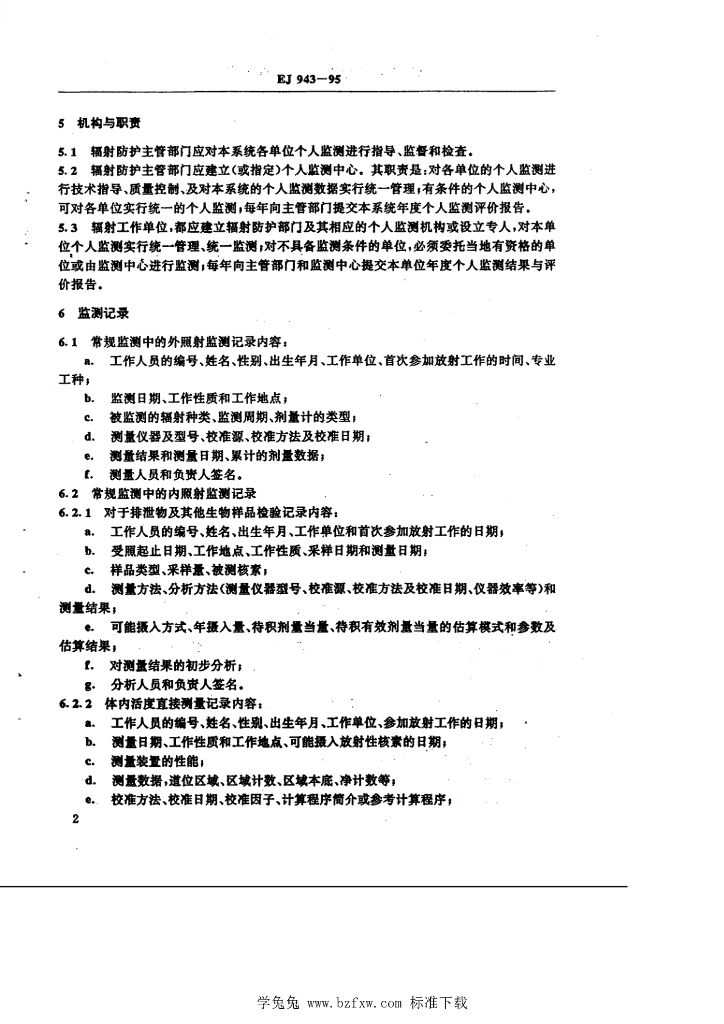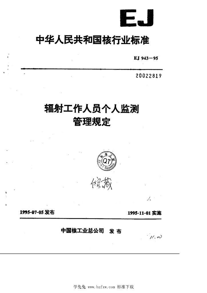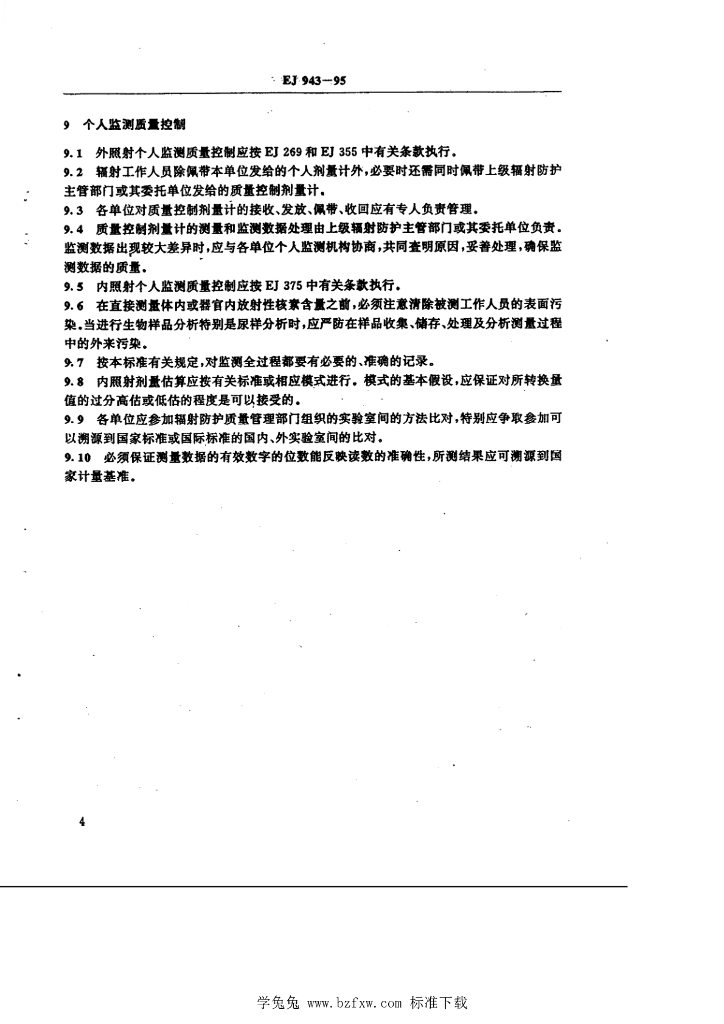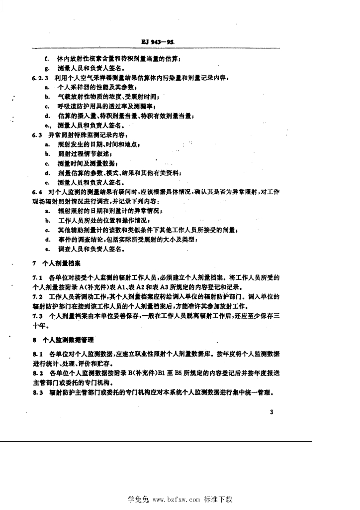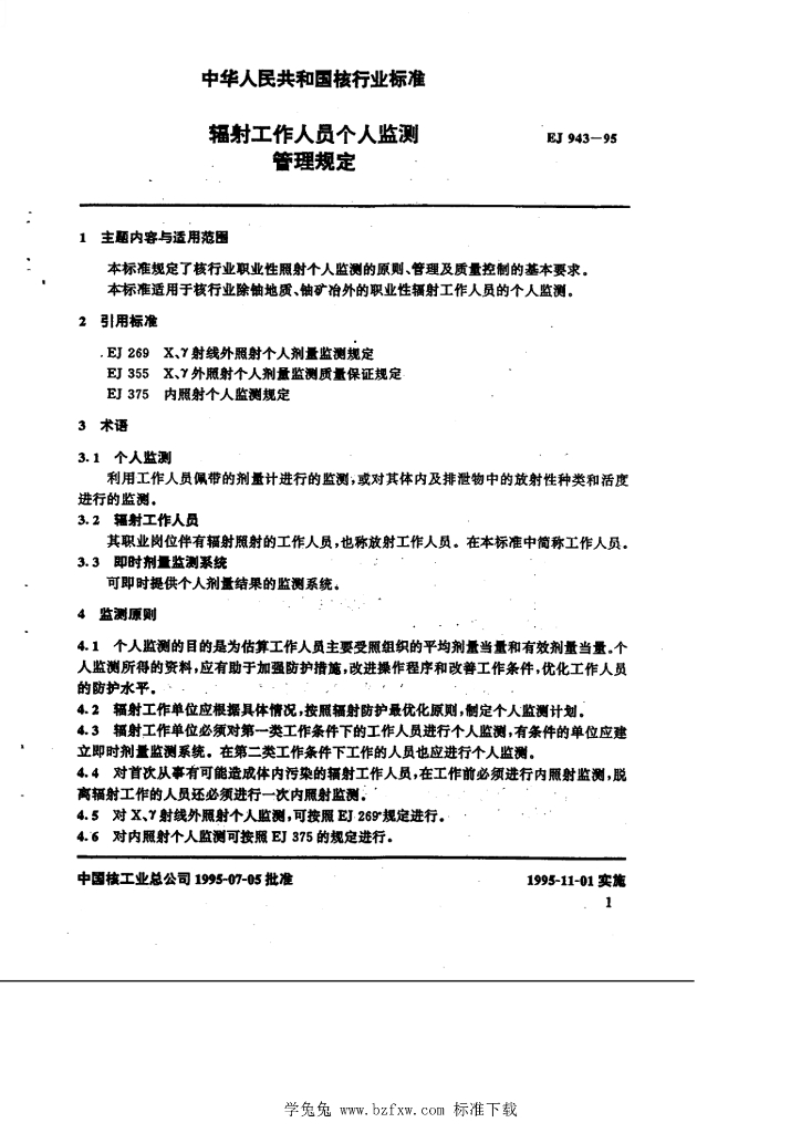 EJ 943-1995 辐射工作人员个人监测 管理规定