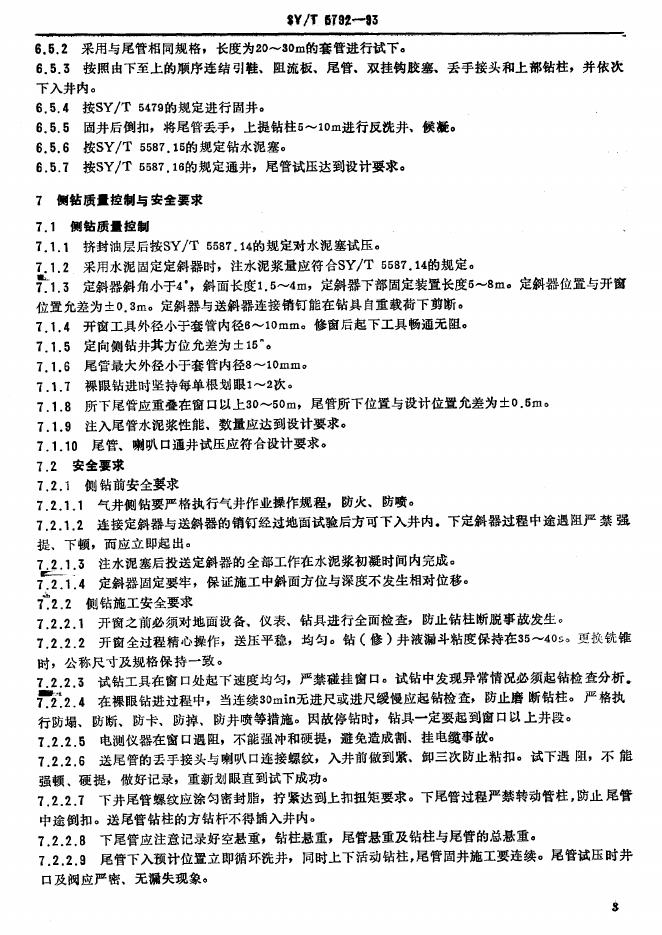 SY/T 5792-1993 油(气)水井侧钻施工作业规程
