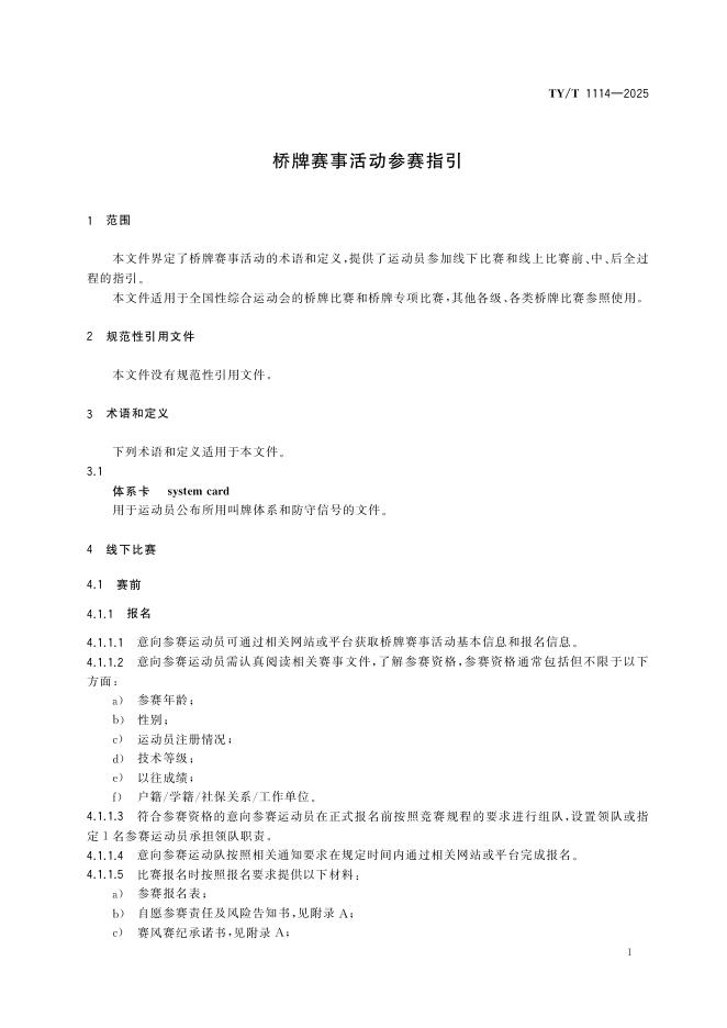 TY/T 1114-2025 桥牌赛事活动参赛指引