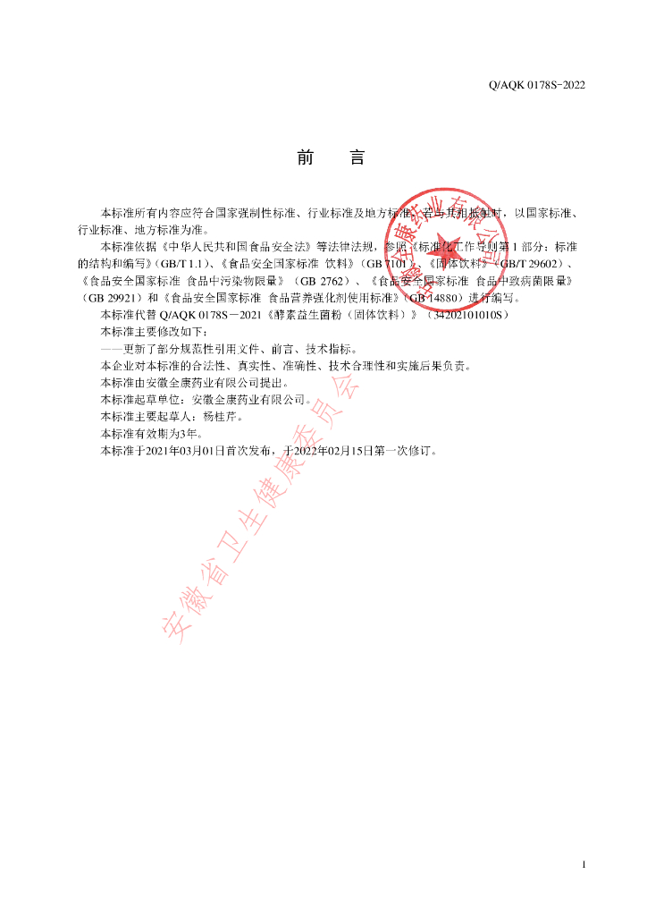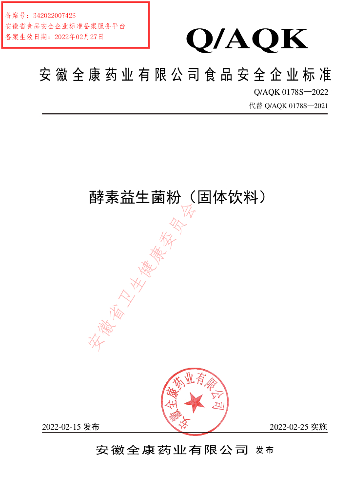 Q/AQK 0178S-2022 酵素益生菌粉(固体饮料)