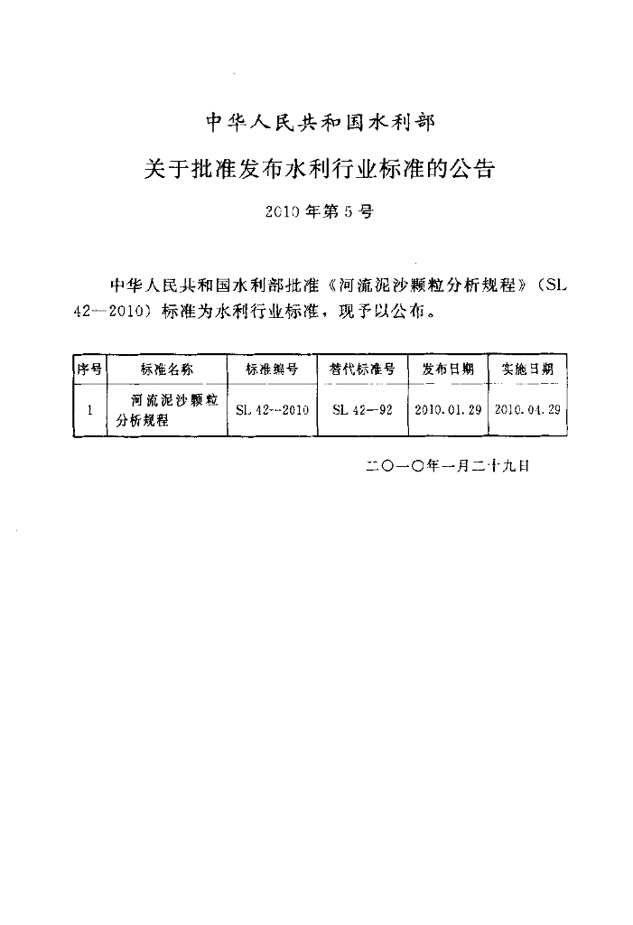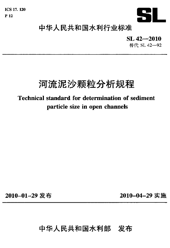 SL 42-2010 河流泥沙颗粒分析规程