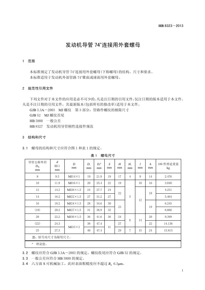 HB 8323-2013(2017) 发动机导管74°连接用外套螺母