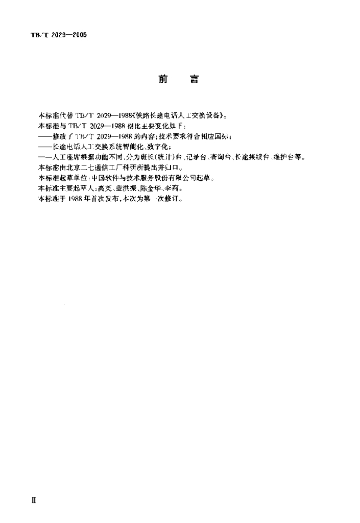 TB/T 2029-2005 铁路人工话务系统设备技术要求和试验方法