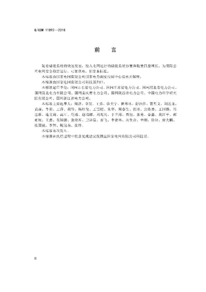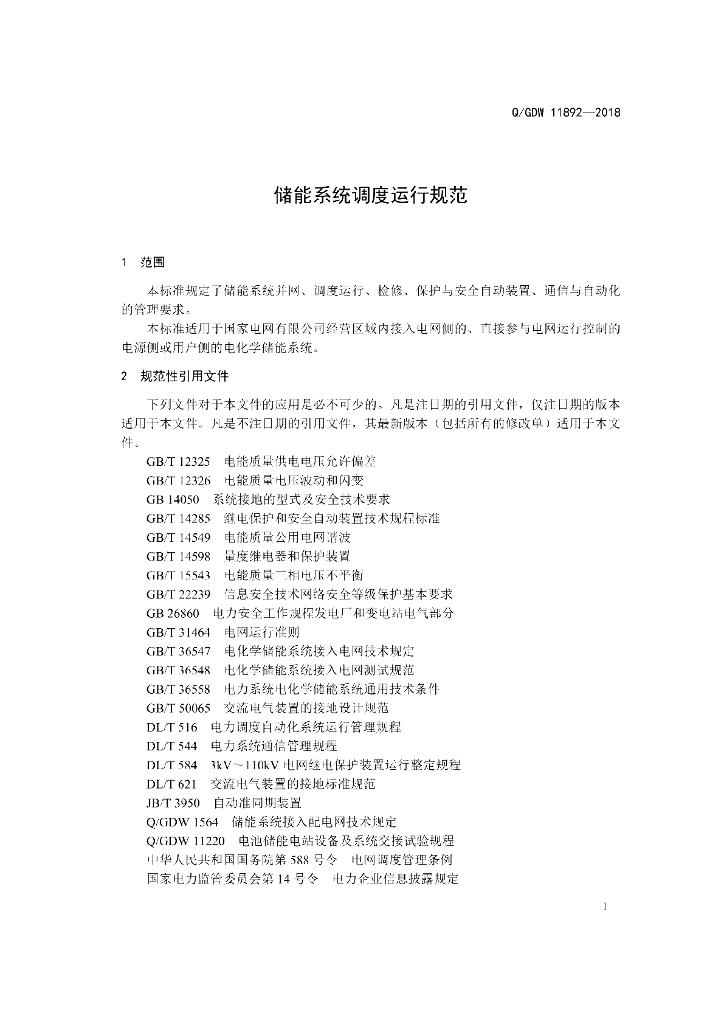 Q/GDW 11892-2018 储能系统调度运行规范