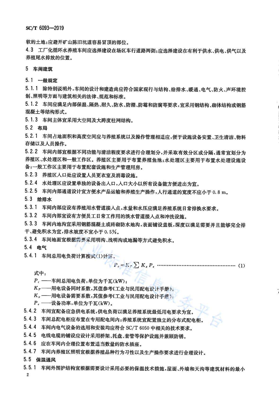 SC/T 6093-2019 工厂化循环水养殖车间设计规范