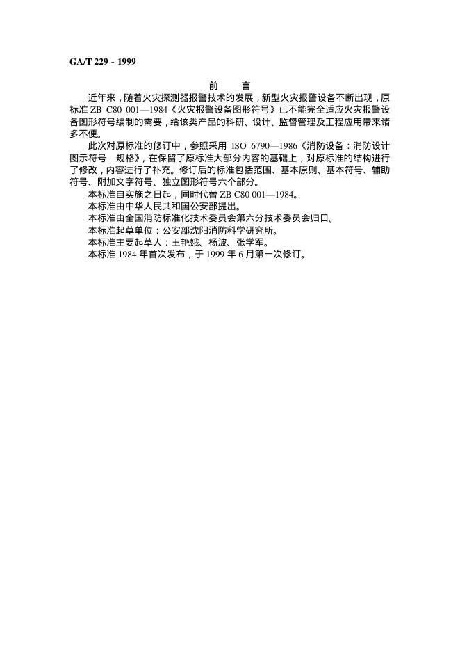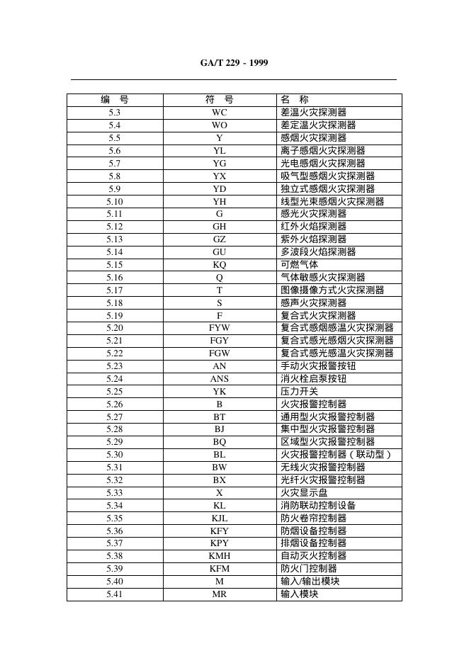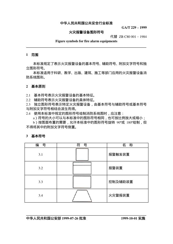 GA/T 229-1999 火灾报警设备图形符号
