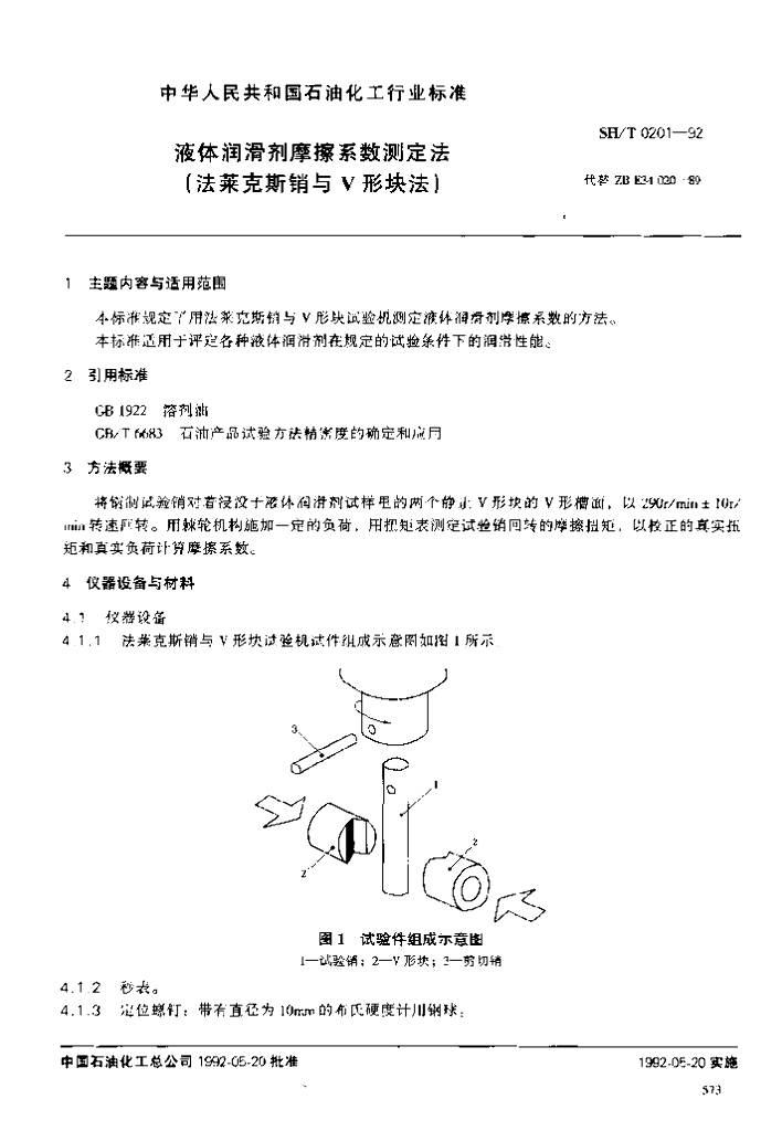 SH/T 0201-1992 液体润滑剂摩擦系数测定法(法莱克斯销与V形块法)
