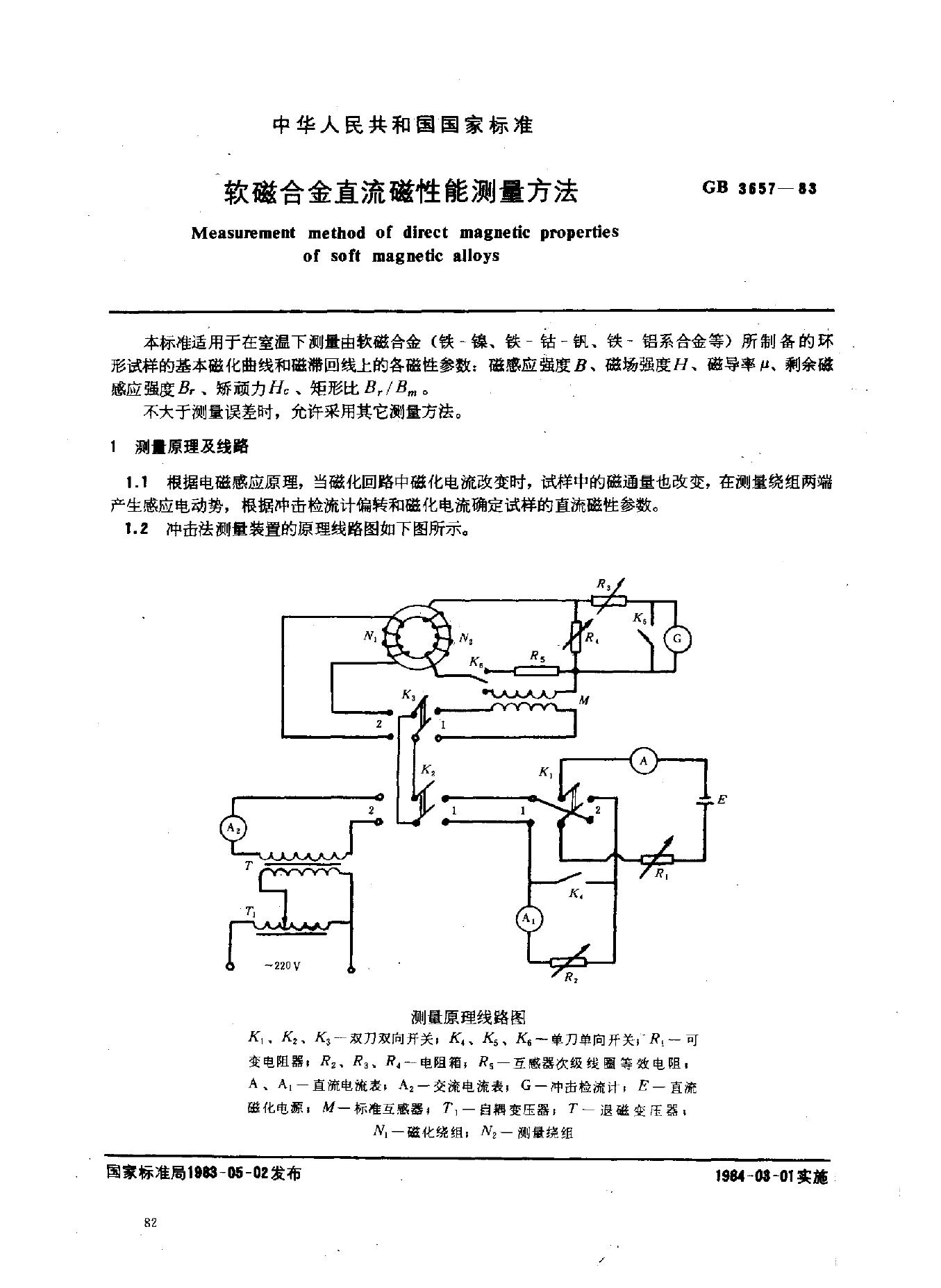 GB/T 3657-1983 软磁合金直流磁性能测量方法