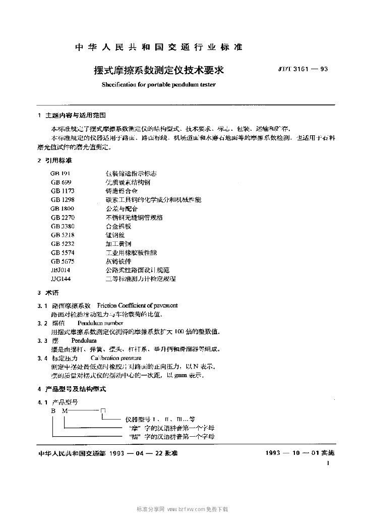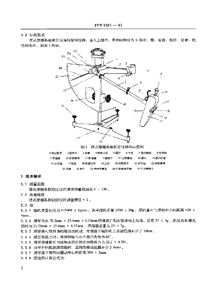 JT/T 3161-1993 摆式摩擦系数测定仪技术要求