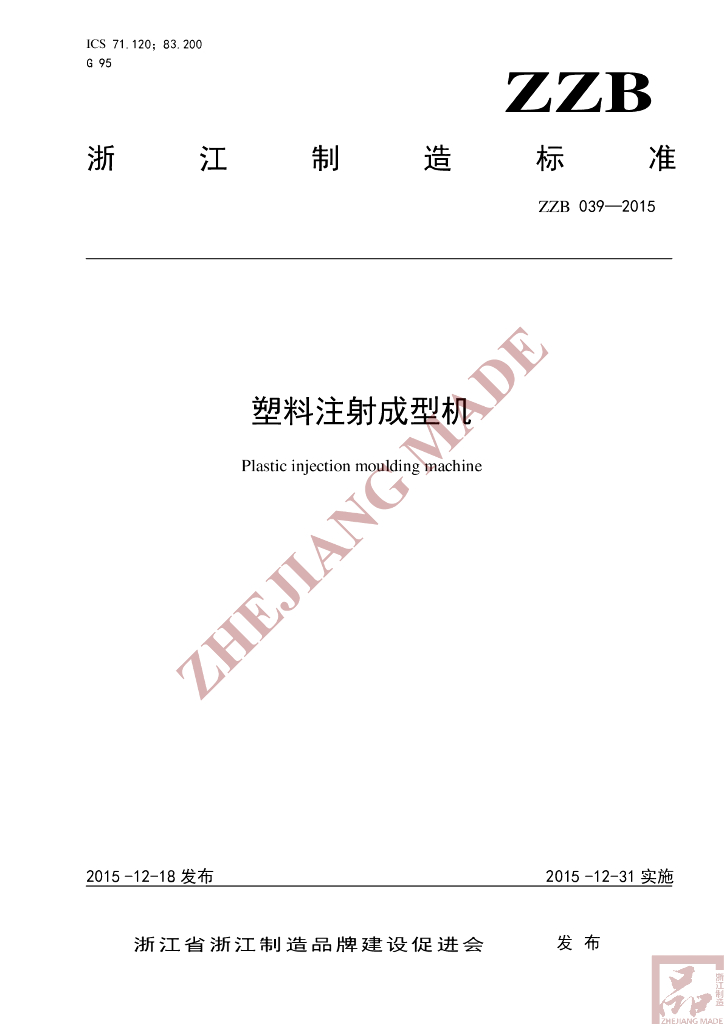 T/ZZB 039-2015 塑料注射成型机