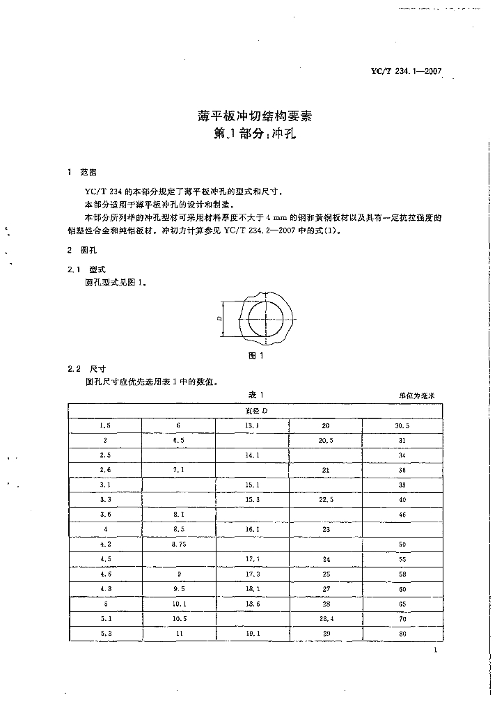YC/T 234.1-2007 薄平板冲切结构要素 第1部分:冲孔