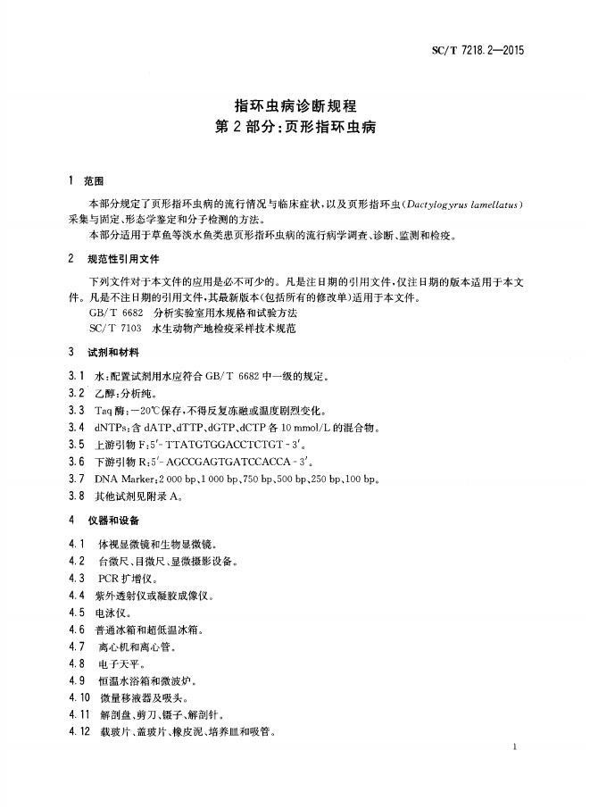 SC/T 7218.2-2015 指环虫病诊断规程 第2部分:页形指环虫病