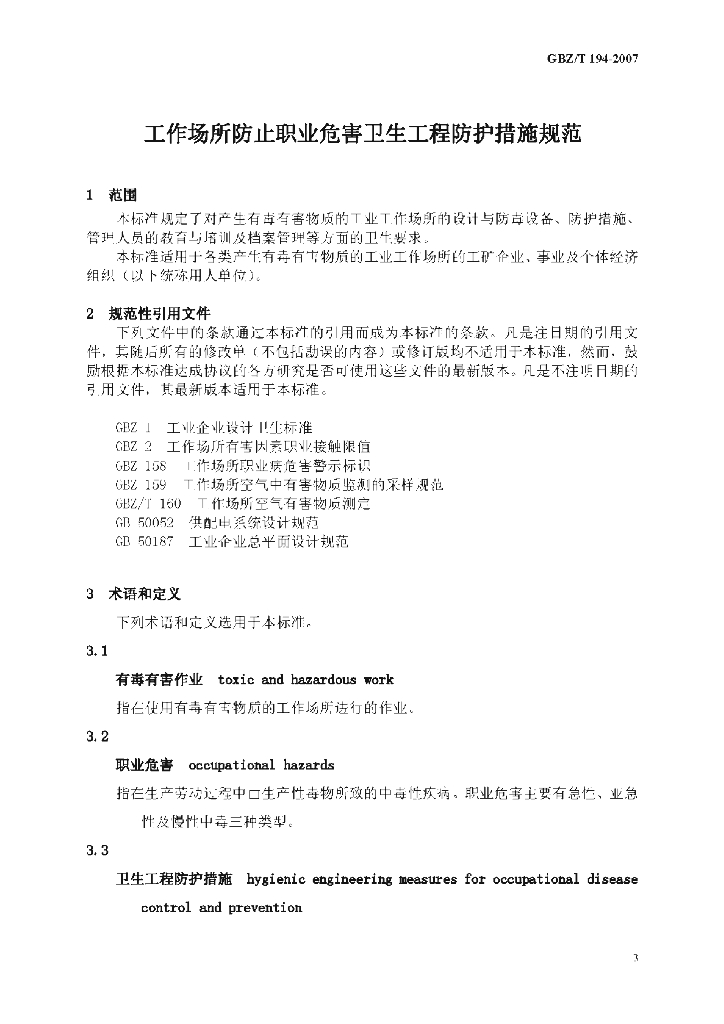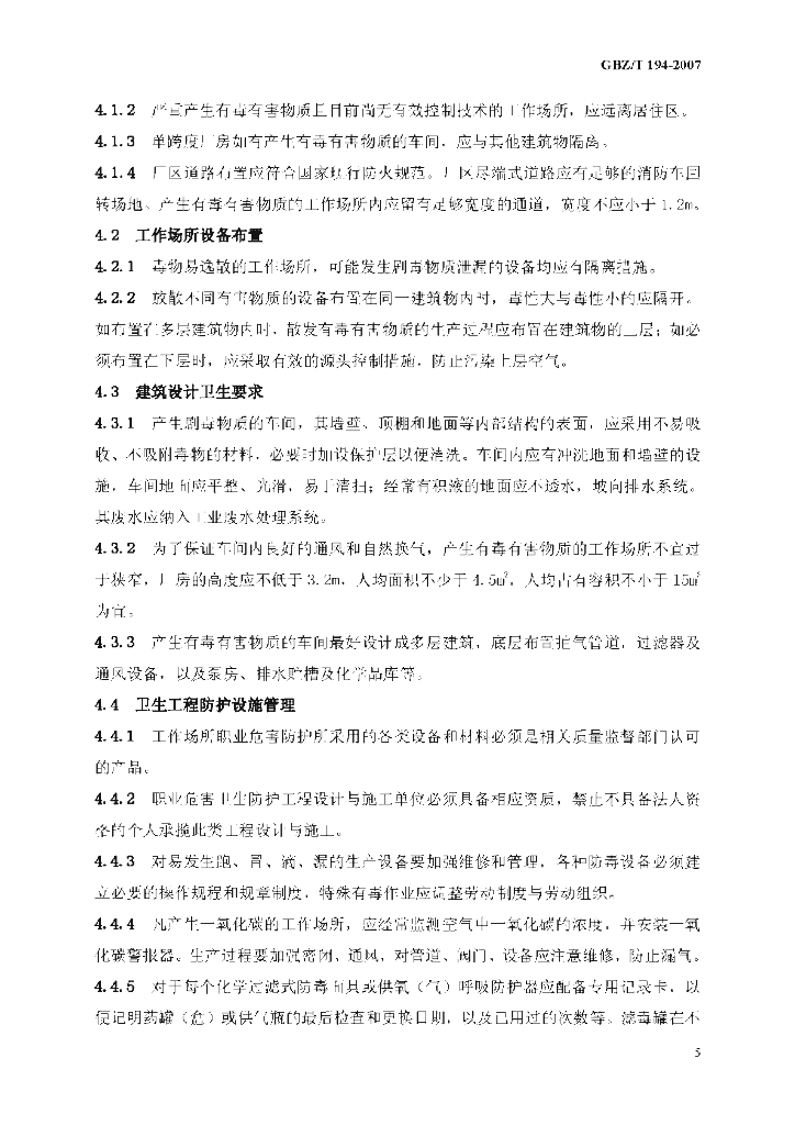 GBZ/T 194-2007 工作场所防止职业中毒卫生工程防护措施规范