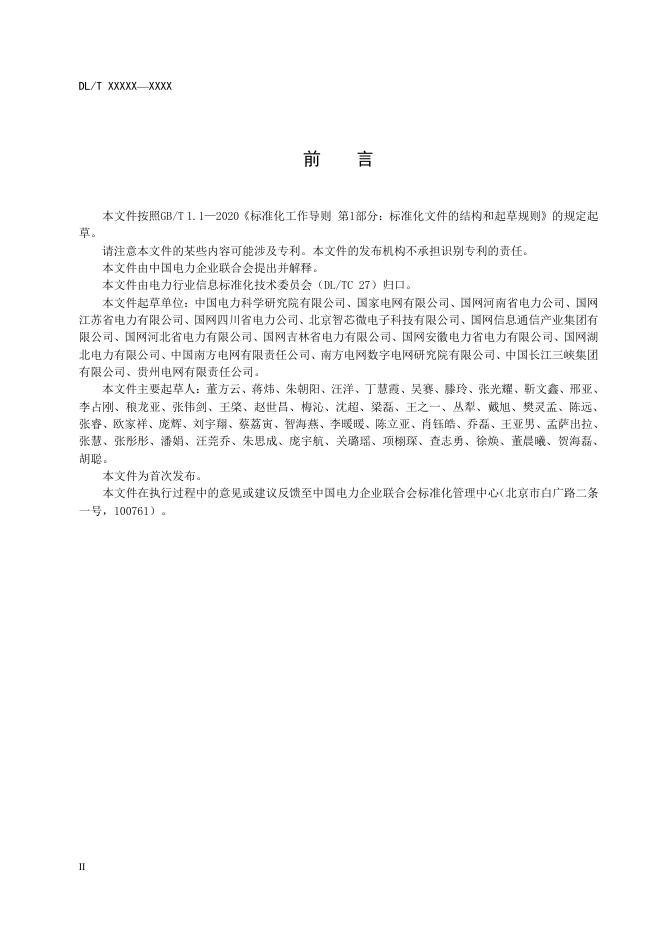 本文件起草单位:中国电力科学研究院有限公司、国家电网有限公司、国网河南省电力公司、国网江苏省电力有限公司、国网四川省电力公司、北京智芯微电子科技有限公司、国网信息通信产业集团有限公司、国网河北省电力有限公司、国网吉林省电力有限公司、国网安徽电力省电力有限公司、国网湖北电力有限公司、中国南方电网有限责任公司、南方电网数字电网研究院有限公司、中国长江三峡集团有限公司、贵州电网有限责任公司。