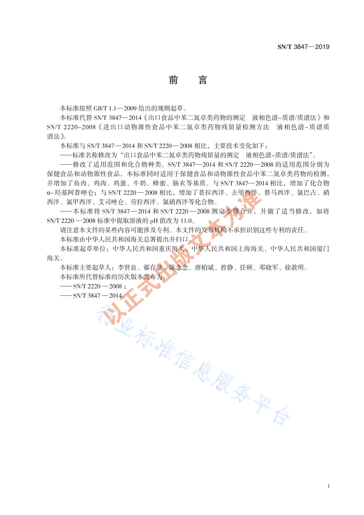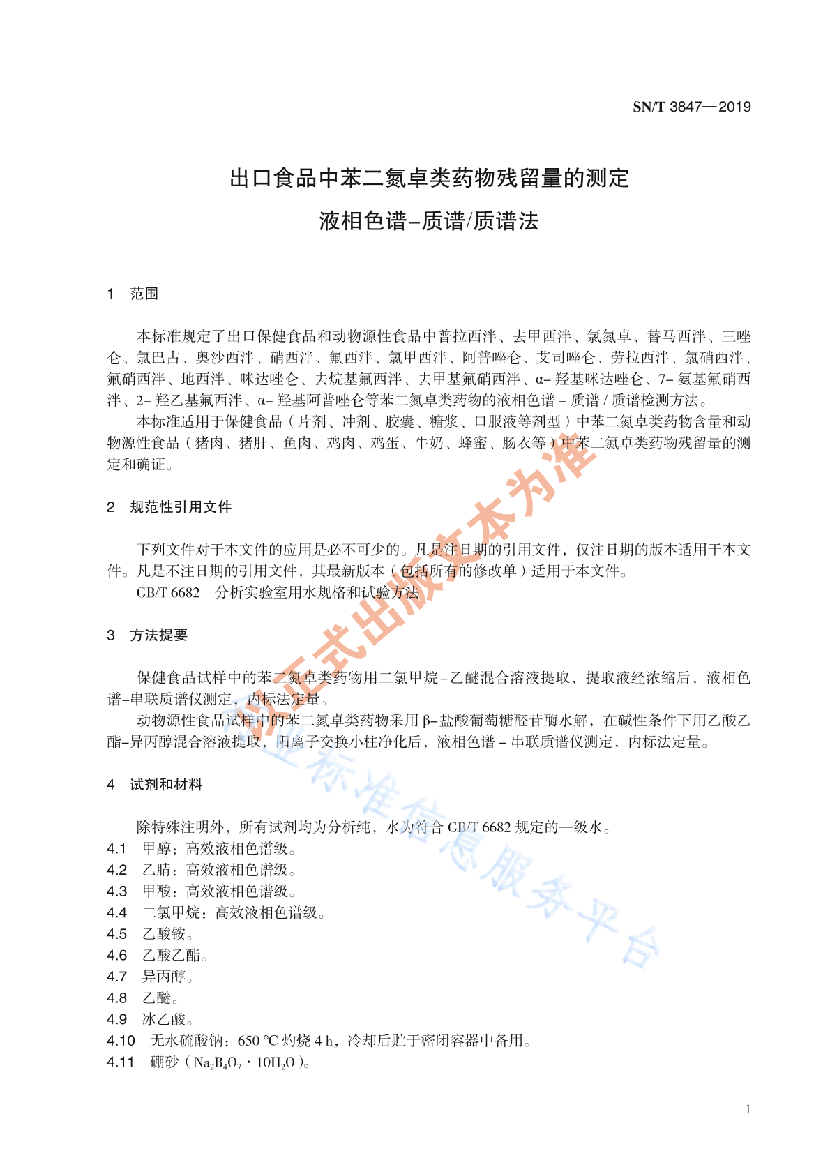 SN/T 3847-2019 出口食品中苯二氮卓类药物残留量的测定 液相色谱-质谱/质谱法